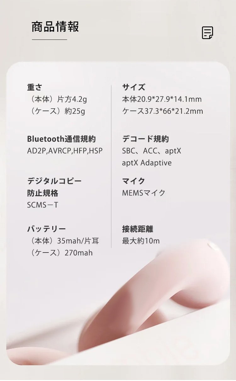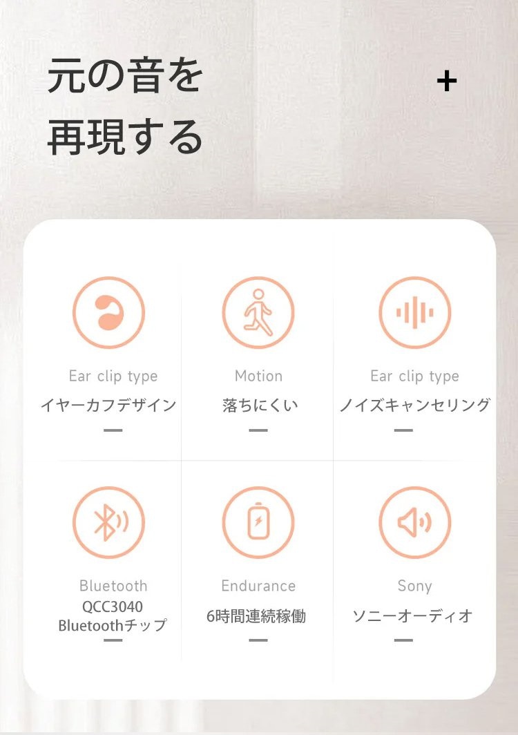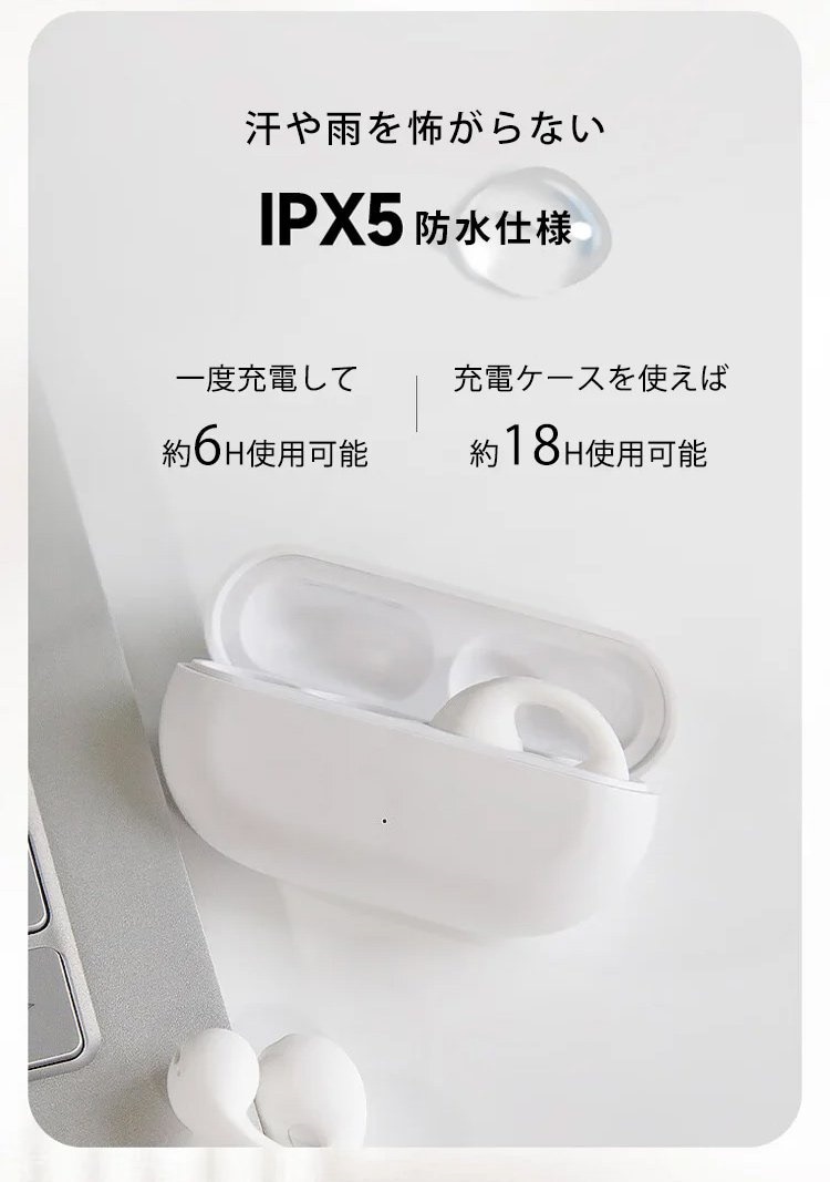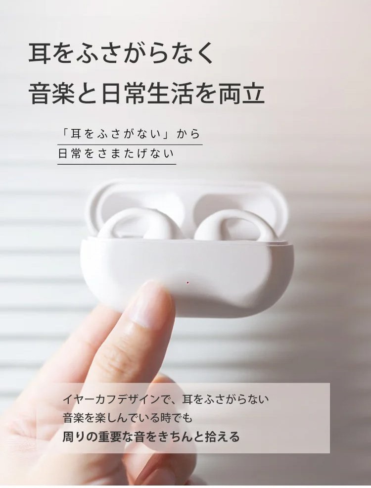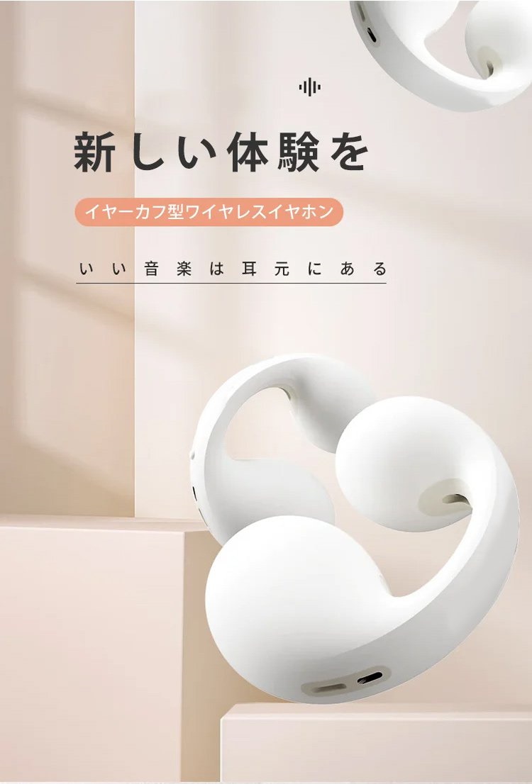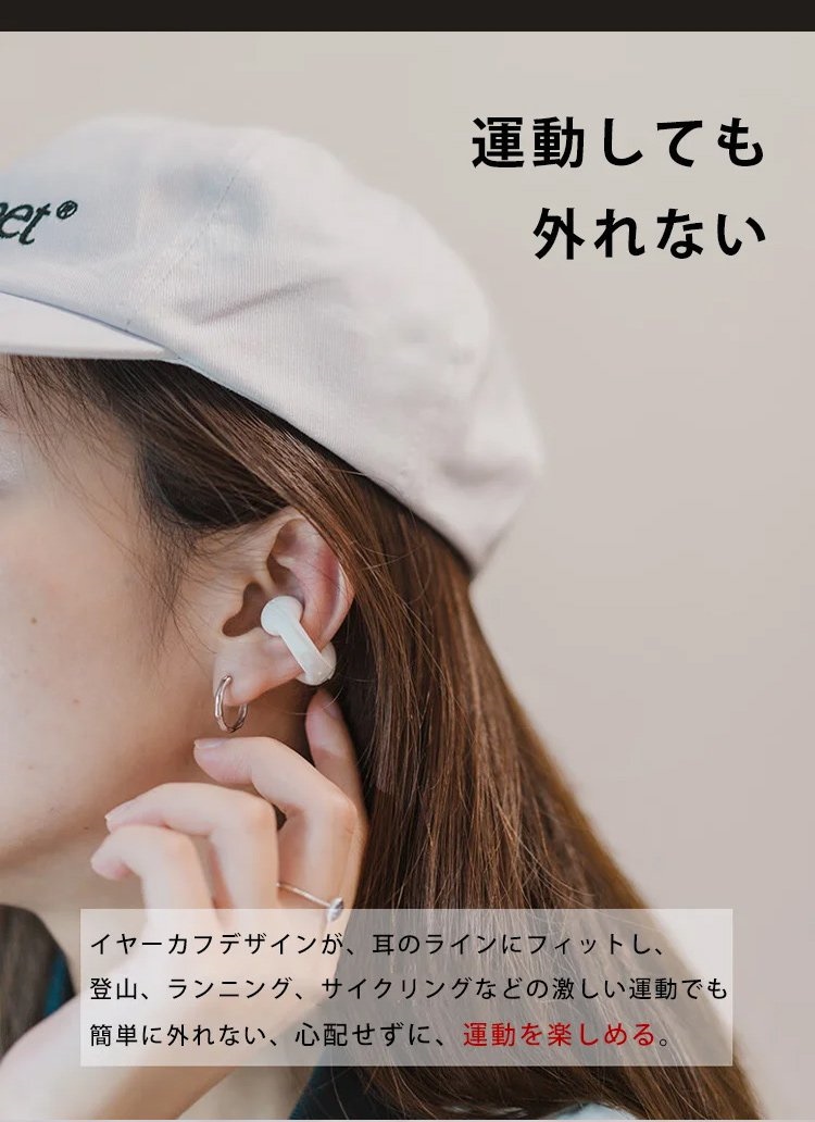 イヤーカフ型ワイヤレスイヤホンイヤーカフデザイン ノイズキャンセリング Bluetooth5.2 高音質 自然でクリアなボーカル 片耳4.2g超軽量 IPX5防水 つけ心地快適