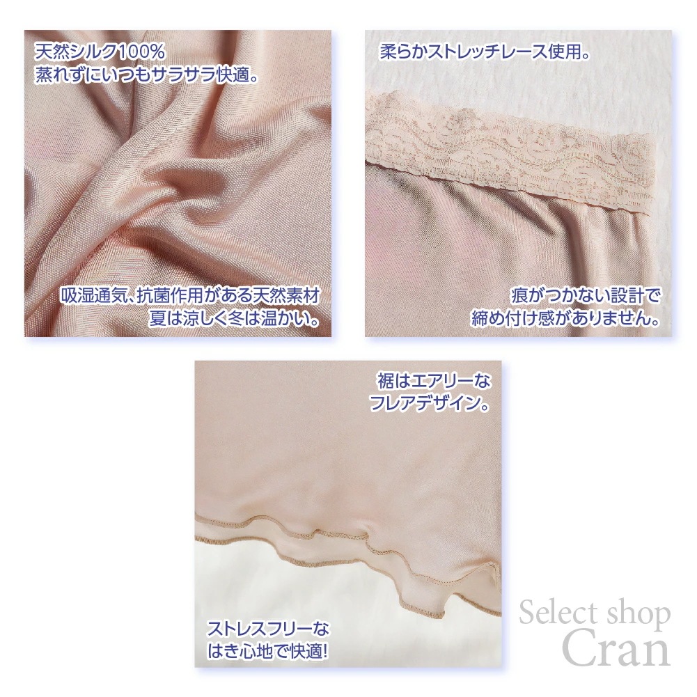 silk tap pants シルク100% タップパンツ シルクキュロット フレアパンツ ペチコート お洒落 シルク インナーパンツ 絹 ショーツ サラサラ 抗菌 冷え取り 蒸れない シ