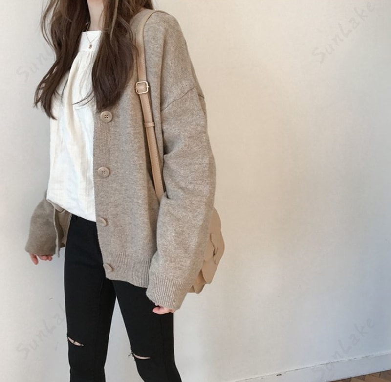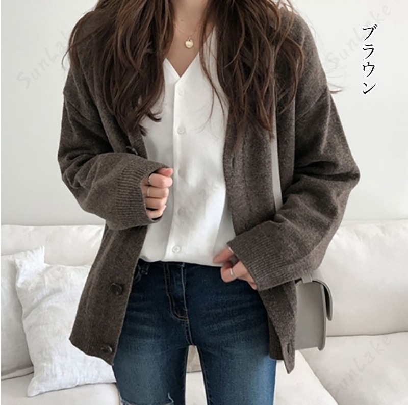 着るだけ垢抜けスタイル ふんわり 韓国ファッション 秋冬 ニットカーディガン 無地日系 カーディガン 怠惰な風 百掛け セーター レディース 秋服 長袖 アウター