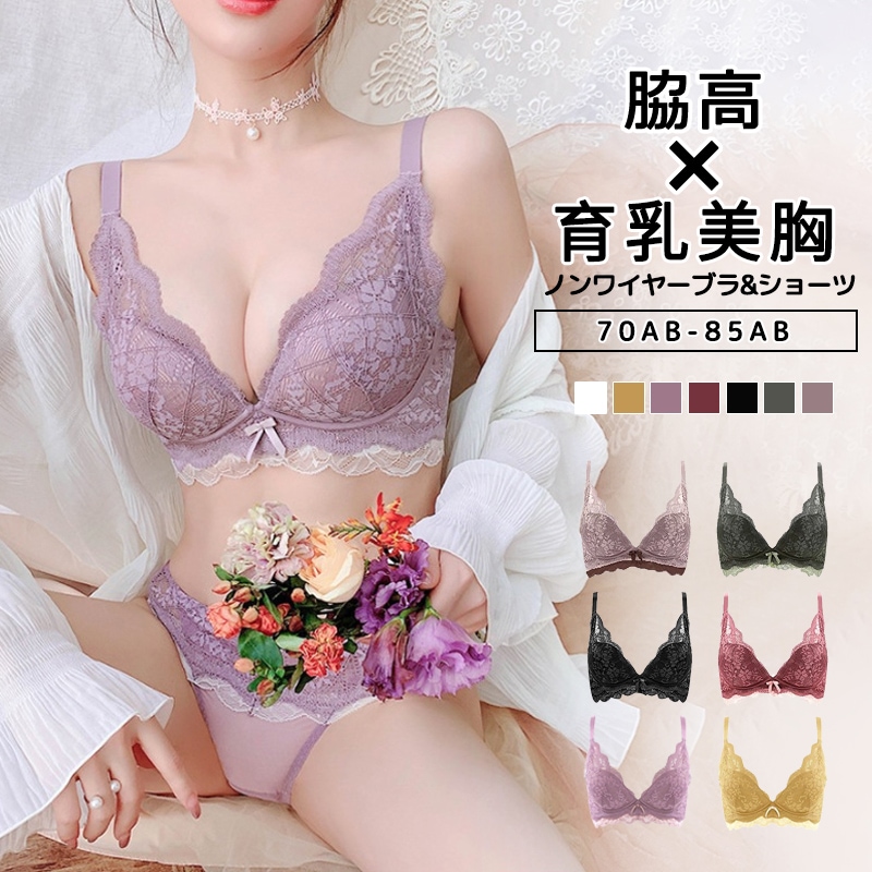 ブラショーツセット下着 上下セットブラジャー ショーツ 下着 セットノンワイヤ 9cm脇高設計 谷間メイク 柔らかい ルームウェア ブラ 補正下着
