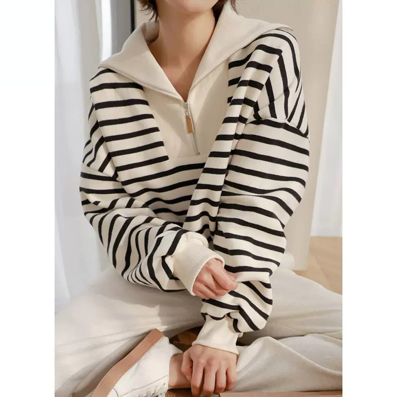 パーカー ストライプのレディースパーカーデザイン感 新作ファッションカジュアルゆったりトップス Tシャツカットソー マウンテンパーカー Tシャツ カットソー
