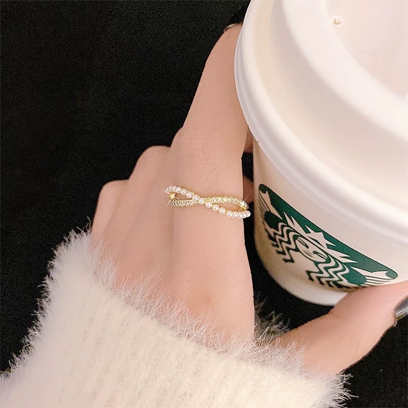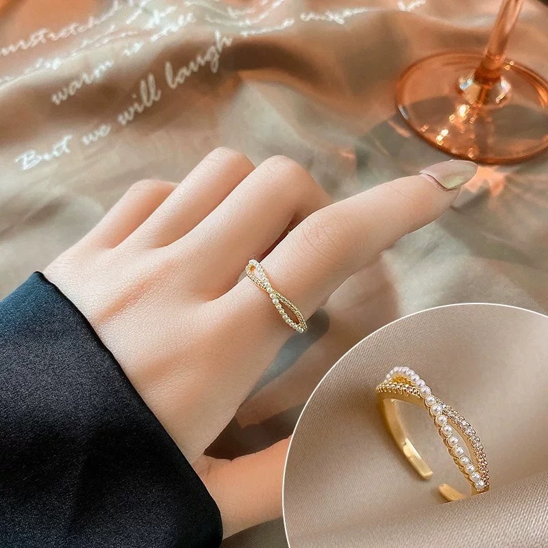 キラッとリング 指輪 レディース パール 新作 冷風シンプルパールジルコン開口調節可能 手元を美しく 可愛い キュートシンプル 韓国ファッションリング 指輪