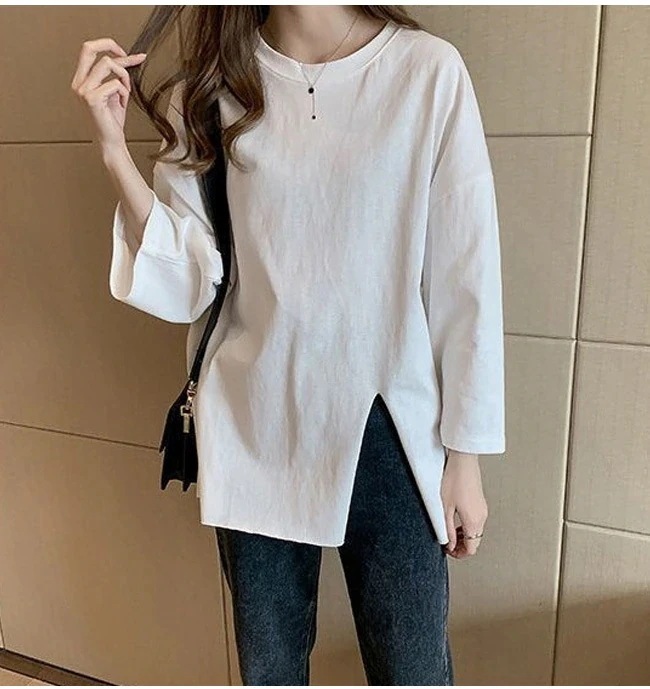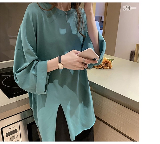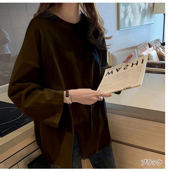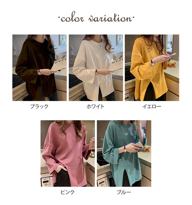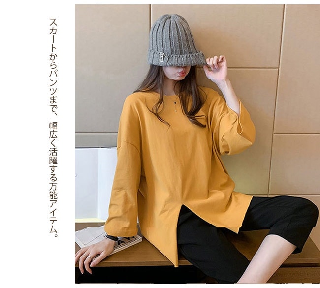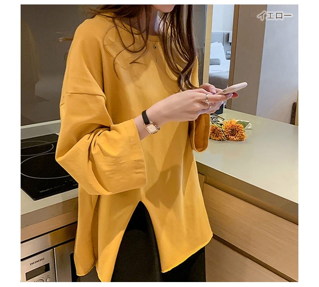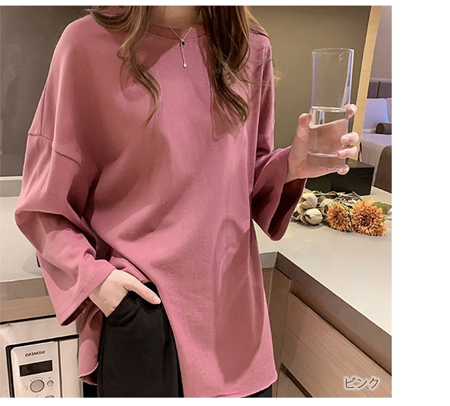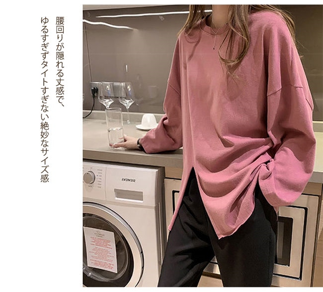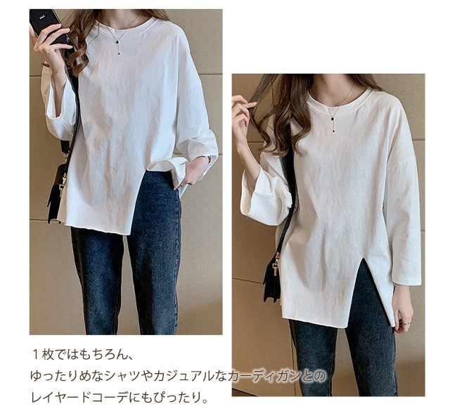 Tシャツ レディース 長袖 カットソー ロング トップス 重ね着 丸首 カジュアル 無地 ベーシック シンプル 体型カバー Tシャツ カットソー