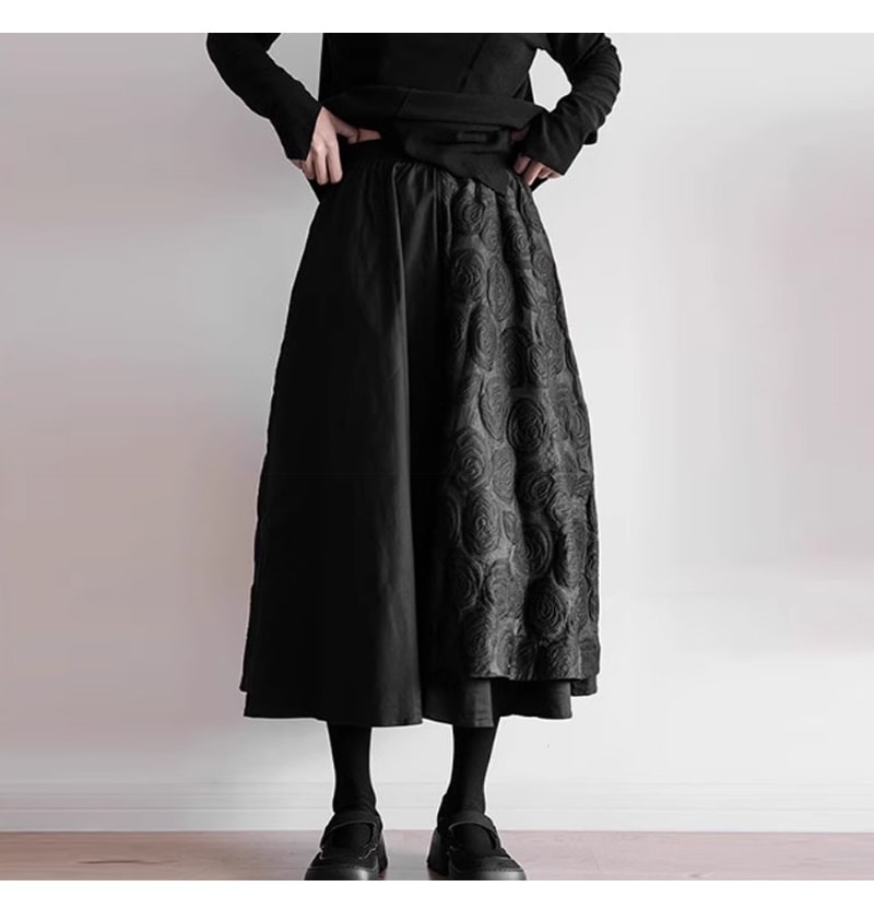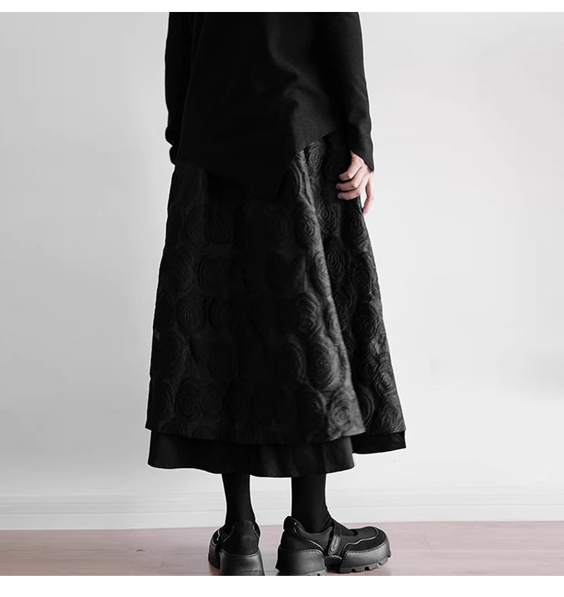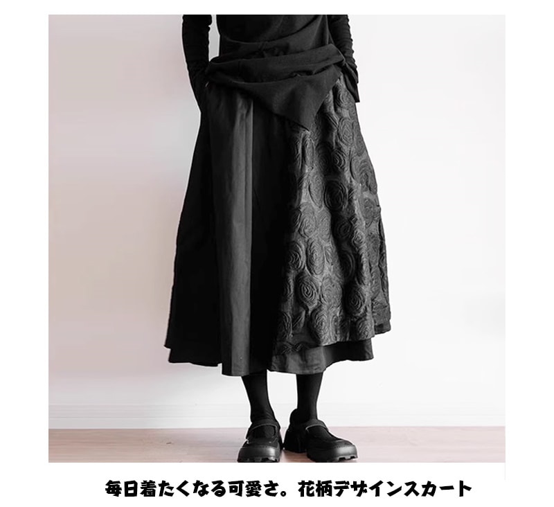 スカート ロング丈 秋冬 フレアスカート 黒 レディース ロングスカート 大きいサイズ マキシ丈 ボトムス ボリューム ウエストゴム 春 秋 ミモレ丈 シンプル ゆったり きれいめ カ
