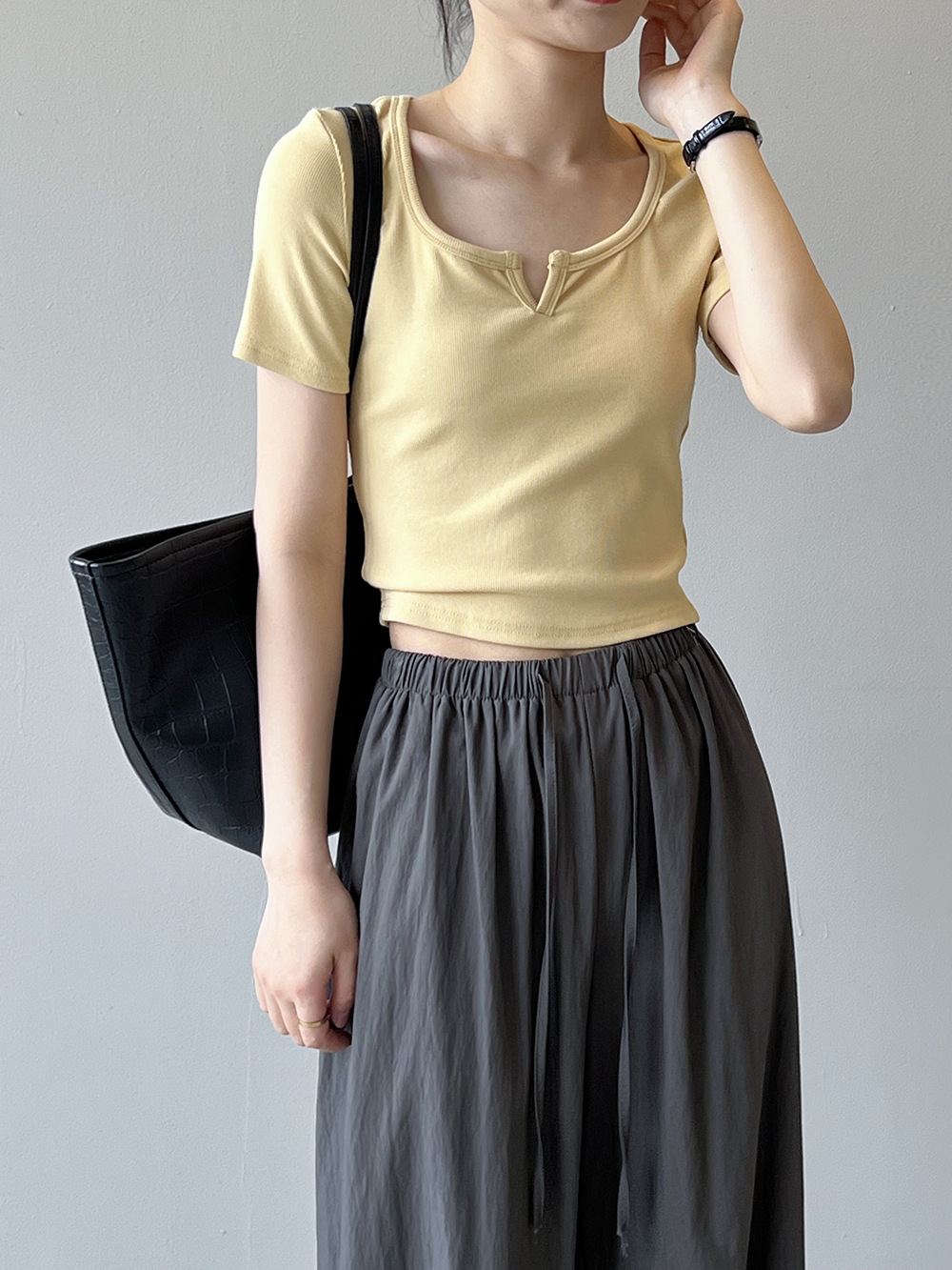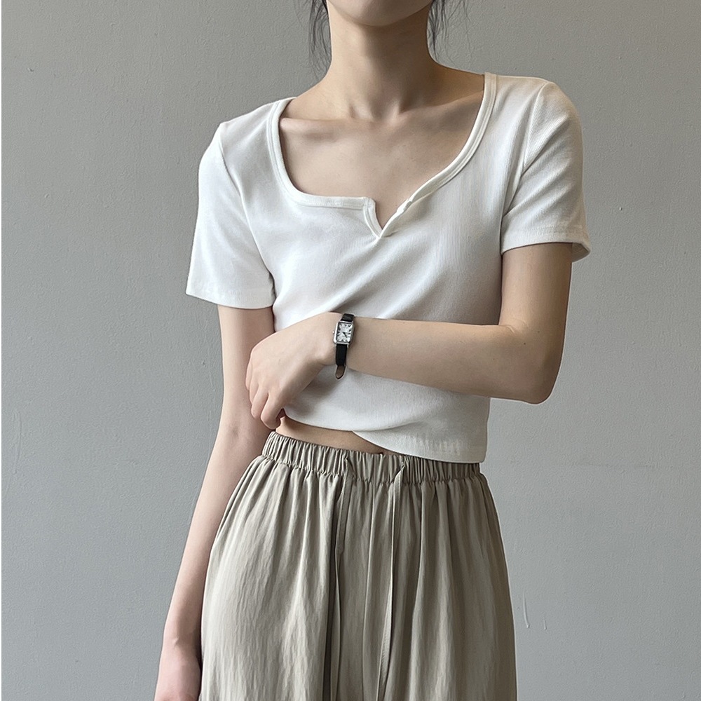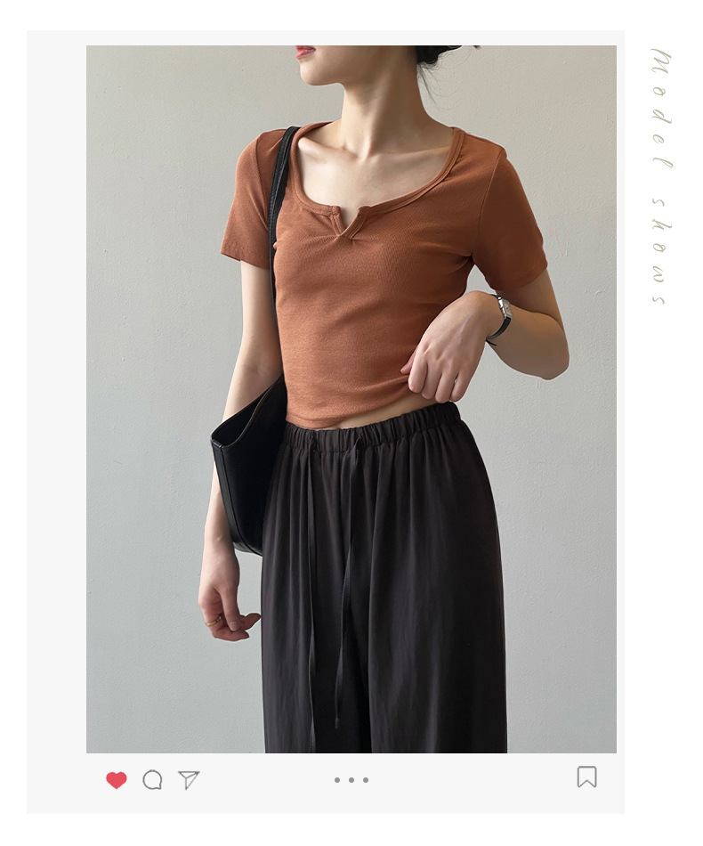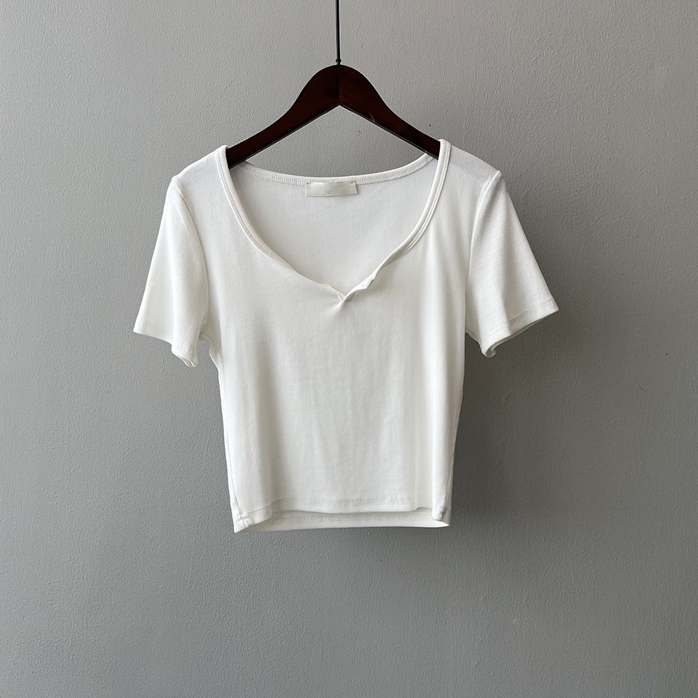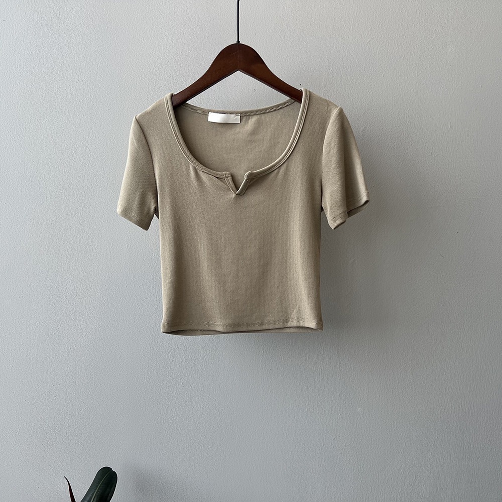 韓版半袖tシャツ2025夏新作ニッチデザイン感スリムショート上着無地着痩せ Tシャツ カットソー