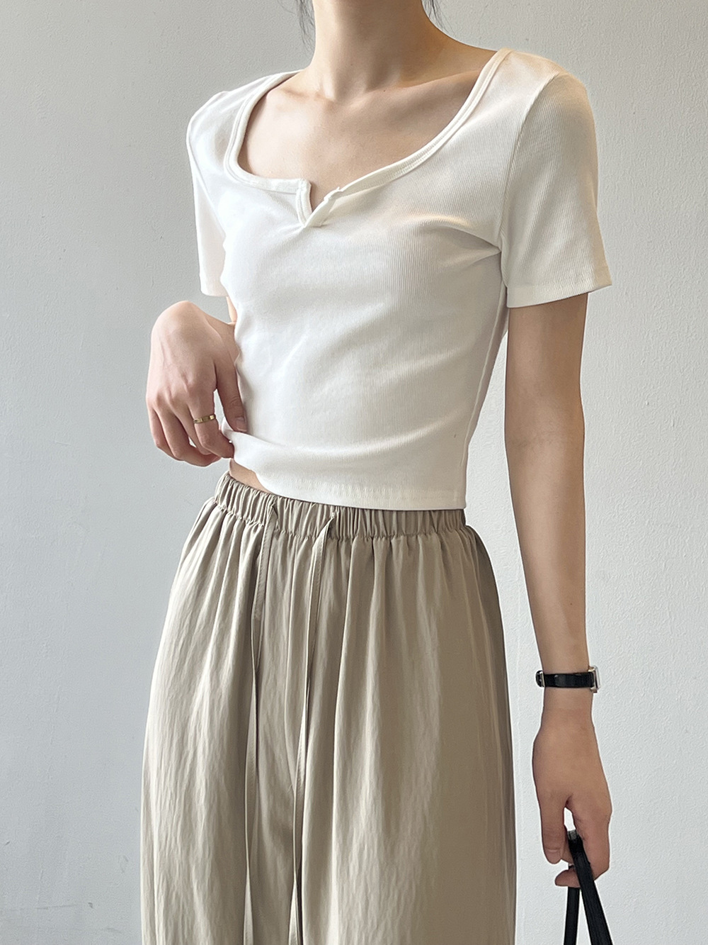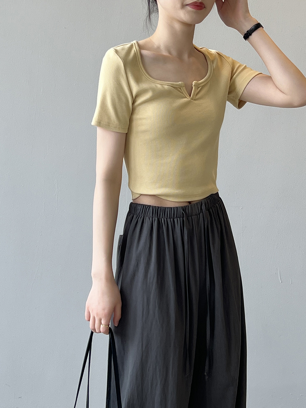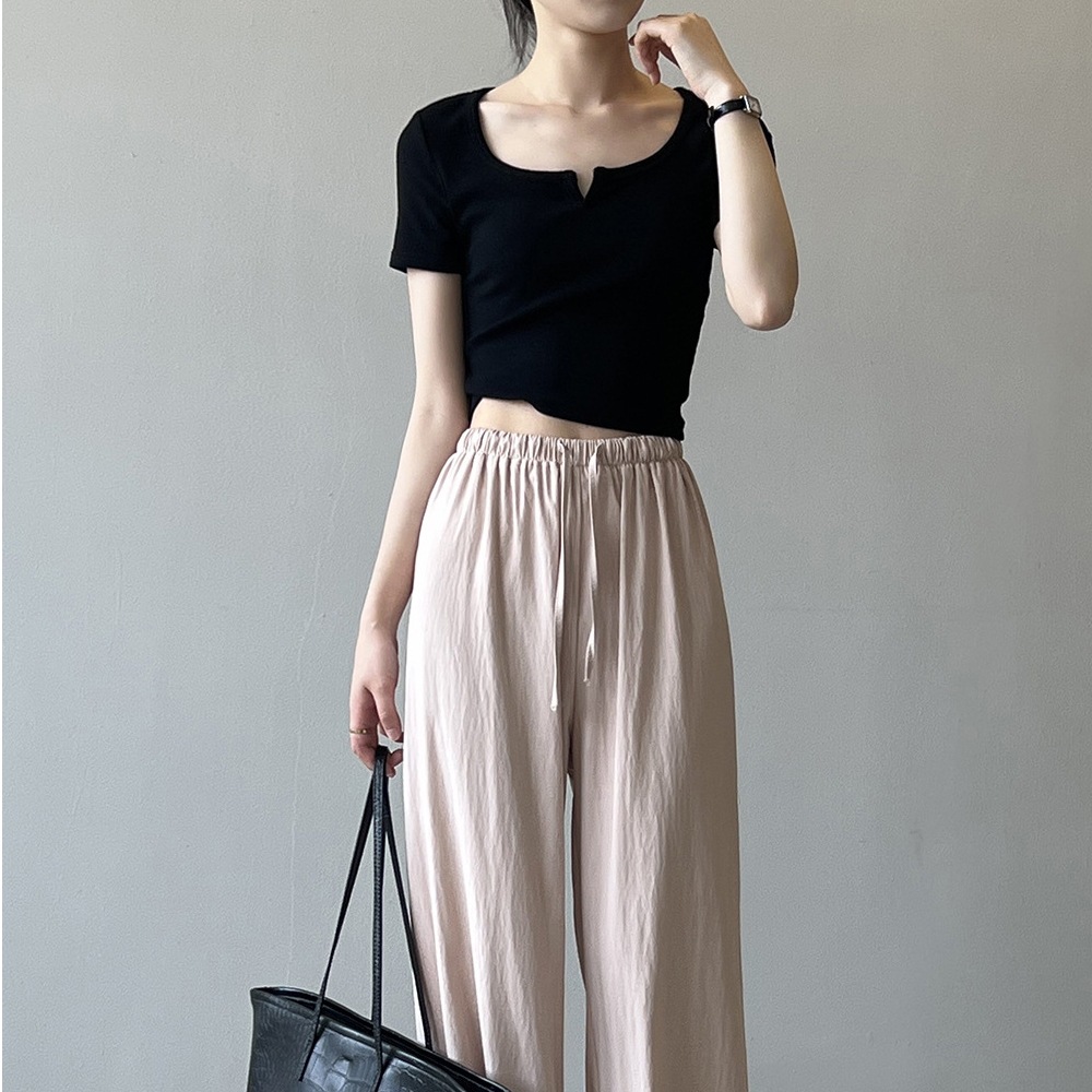 韓版半袖tシャツ2025夏新作ニッチデザイン感スリムショート上着無地着痩せ Tシャツ カットソー