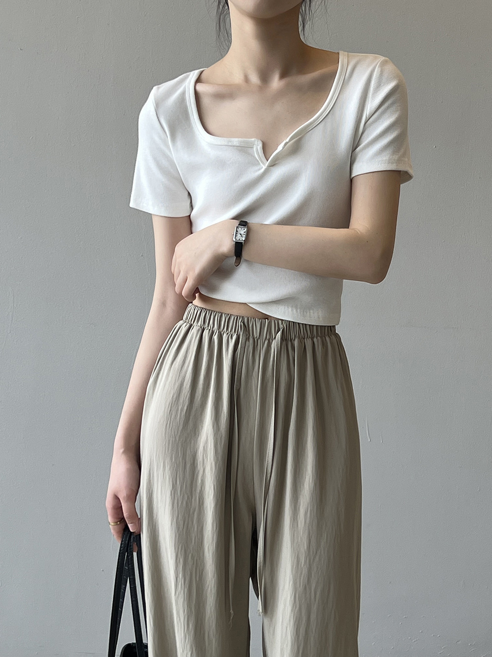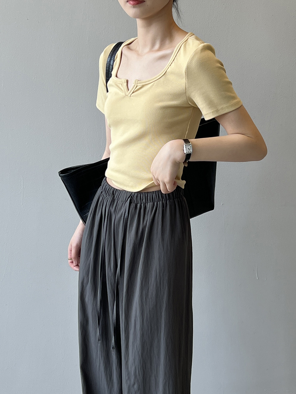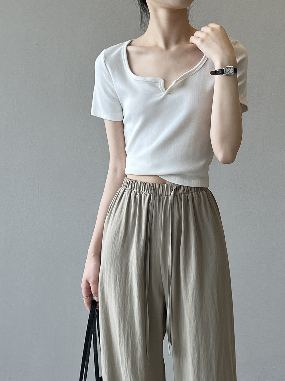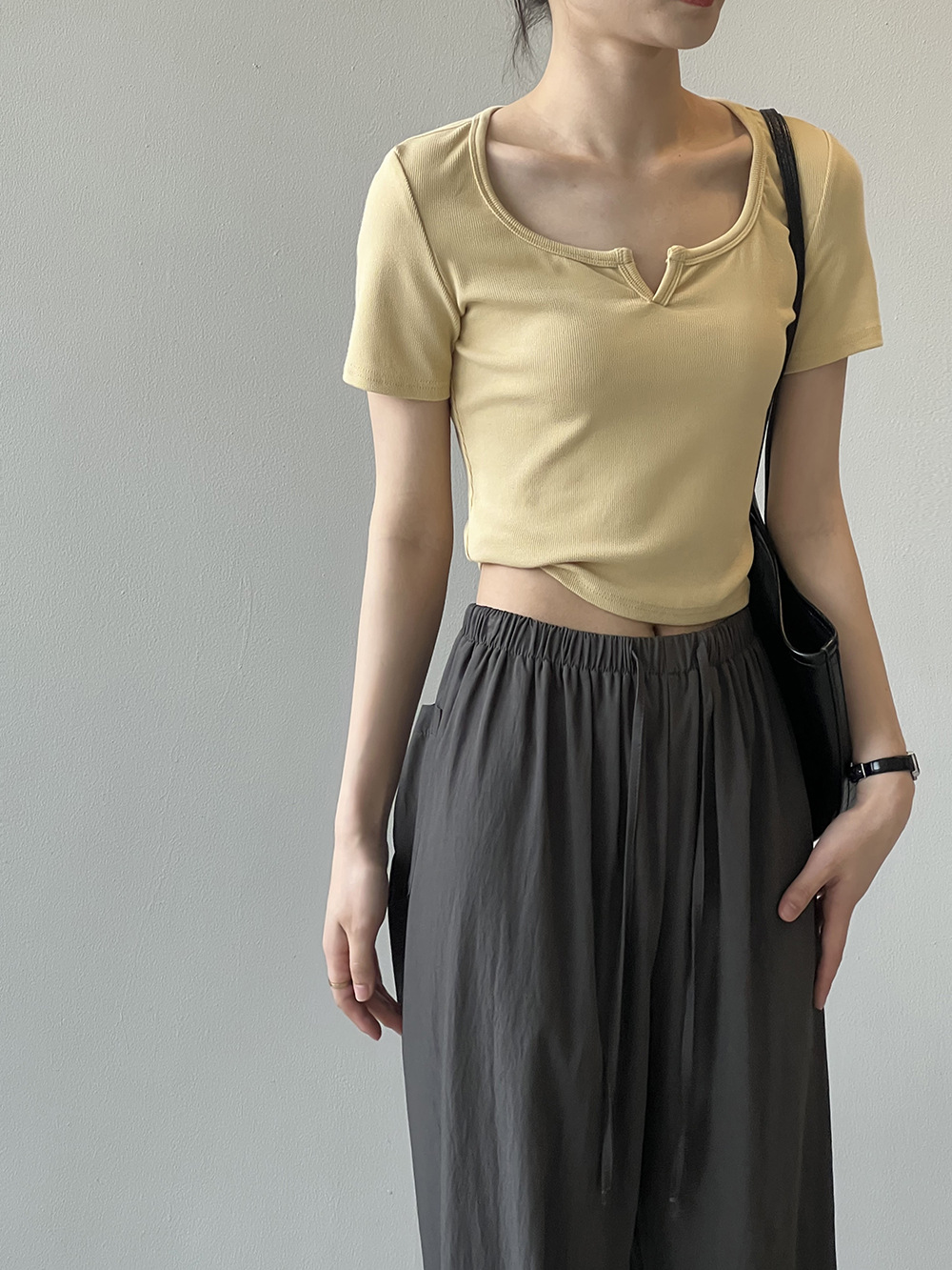 韓版半袖tシャツ2025夏新作ニッチデザイン感スリムショート上着無地着痩せ Tシャツ カットソー
