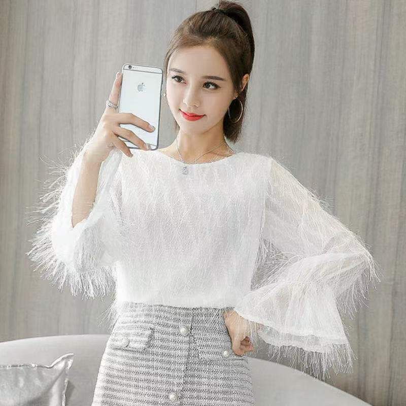 シフォンブラウス シアーブラウス ボリューム袖