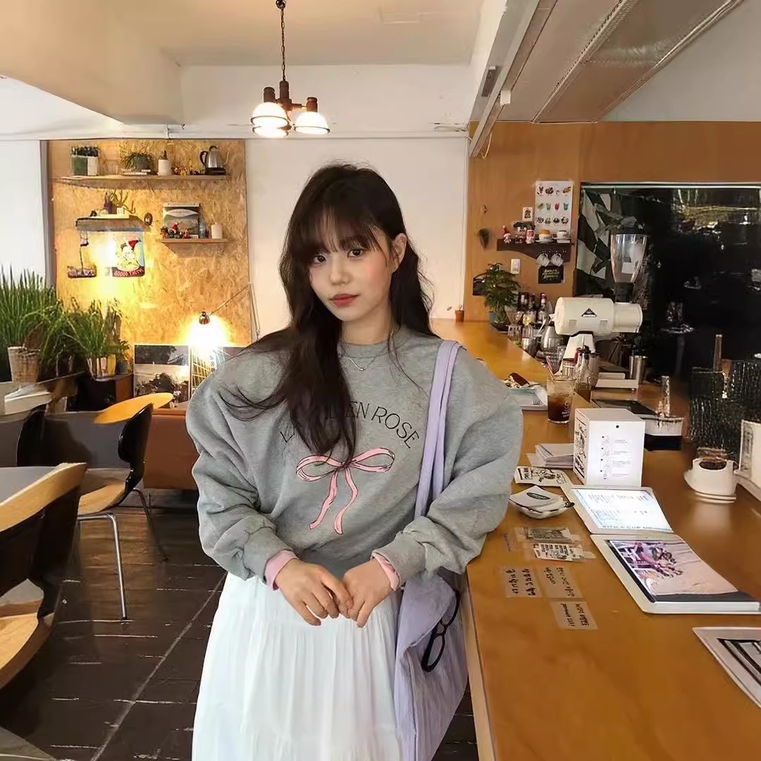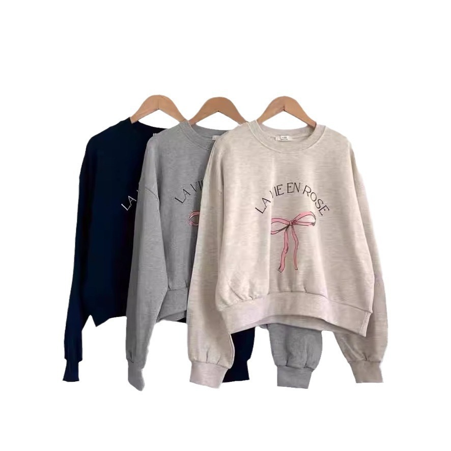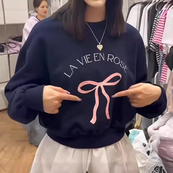 2024新作かわいいボウプリントプルオーバーテリーセーターレディース韓国多用途トップス バーカー パーカー