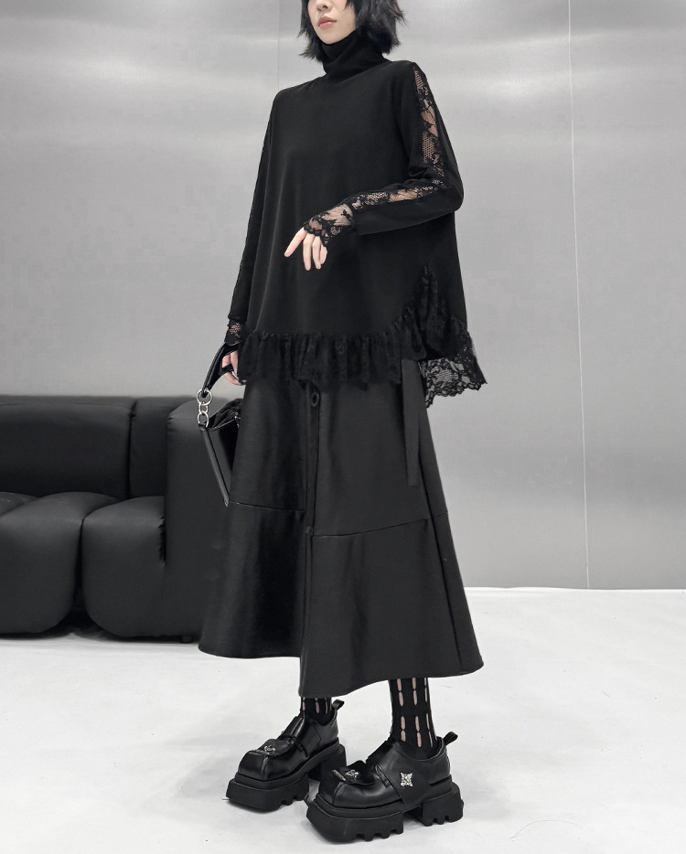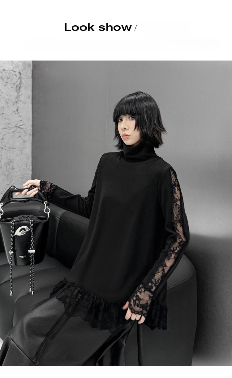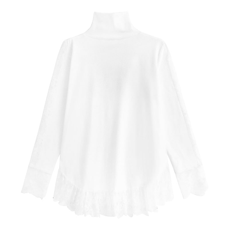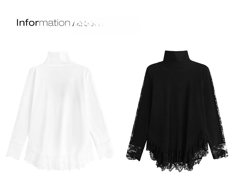 春新作 日系流行り レース切り替え ハイネック ロンT 高級デザイン感長袖トップス 韓国ファッション ゆったり 大きいサイズ 体型カバーTシャツ レディース スウェット 百掛け インナー