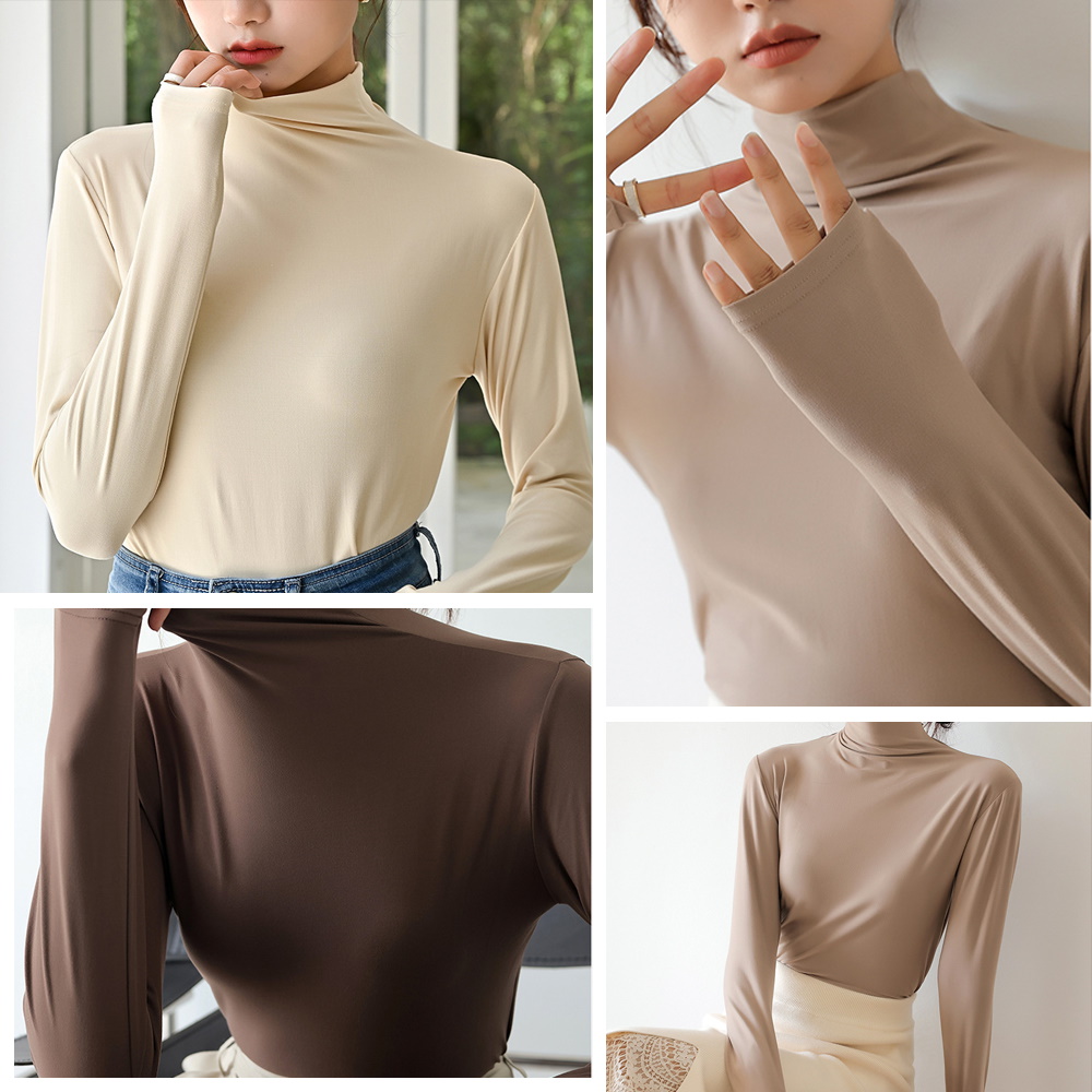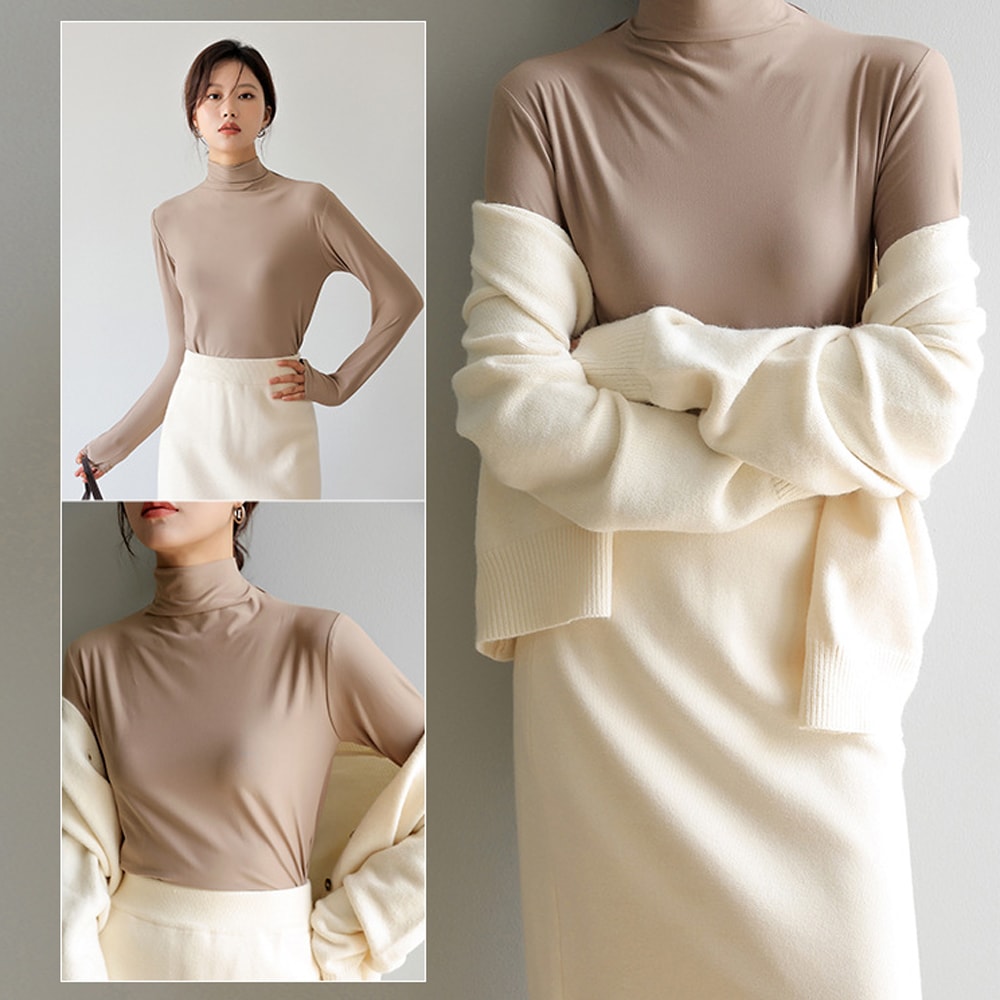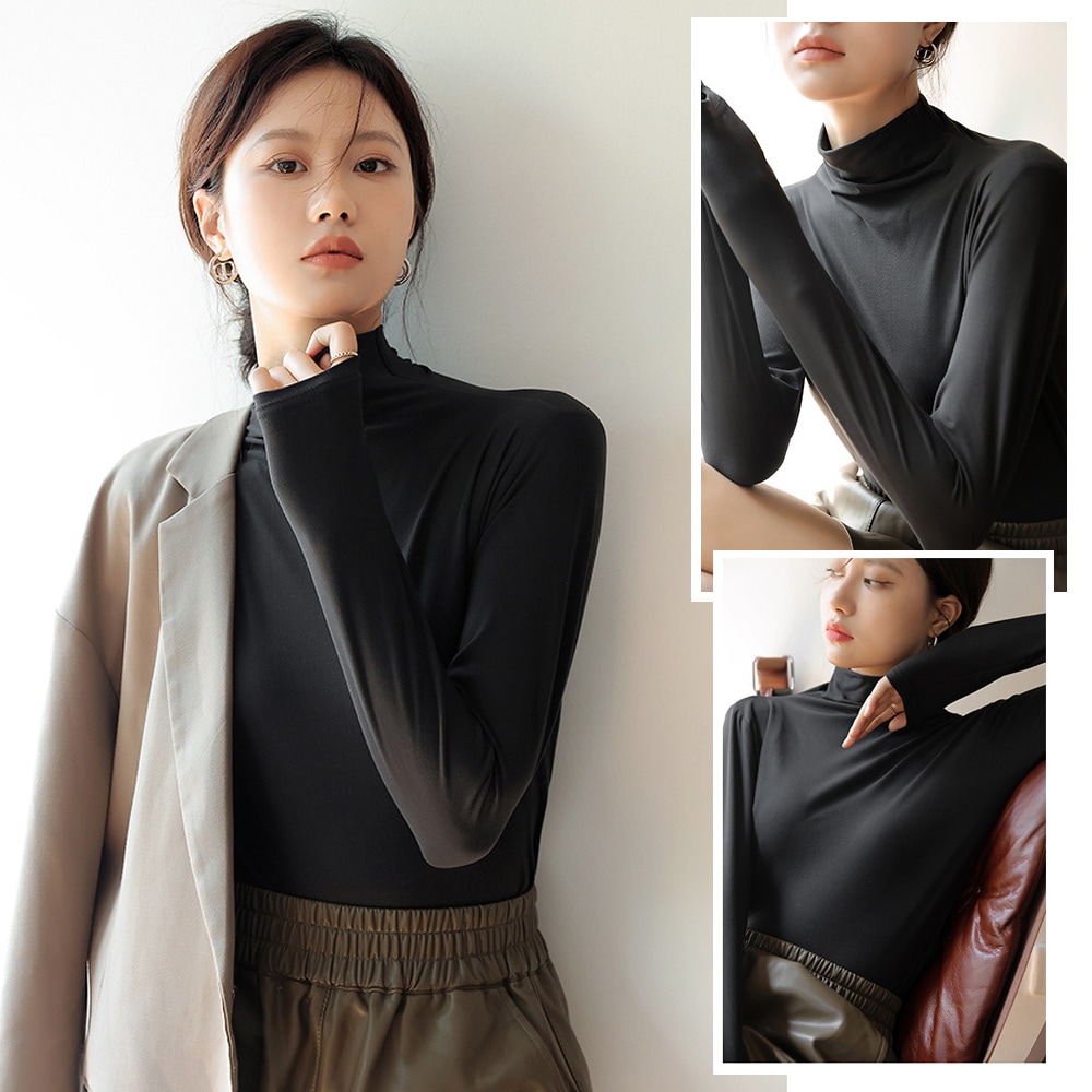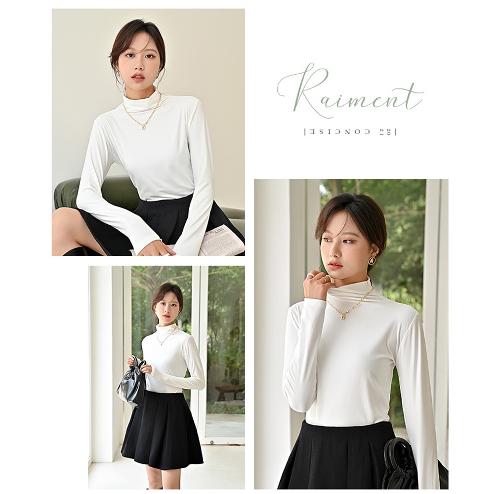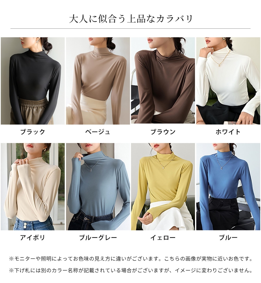 シアーインナー シアートップス インナー カットソー ハイネックトップス レディース 長袖 柔らかい 重ね着 サラッと シアー素材 伸縮性 無地 ストレッチ タートル きれいめ 体型カバー