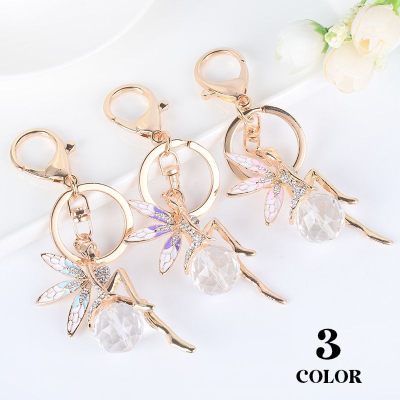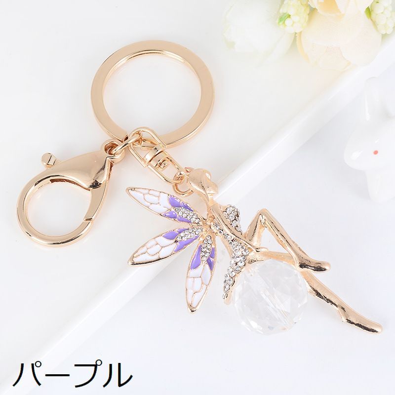 キーホルダー キーリング バッグチャーム レディース 妖精 ラインストーン 揺れる 可愛い おしゃれ 紛失防止 女性用 ワンポイント 雑貨 誕生日 記念日 プレゼント 贈り物 ギフト 母の日 外出 お