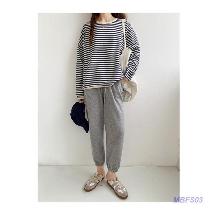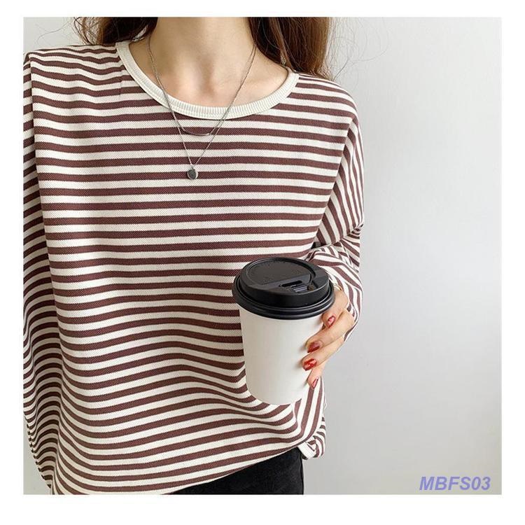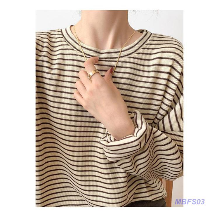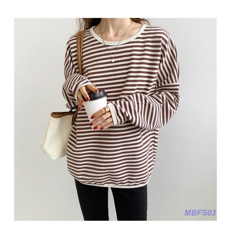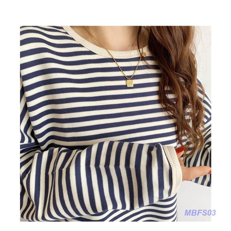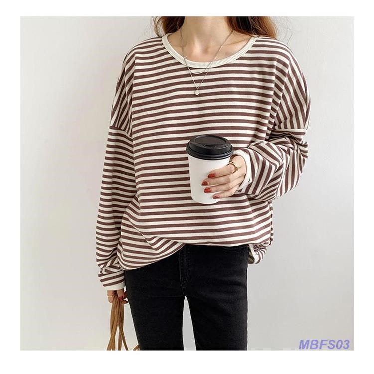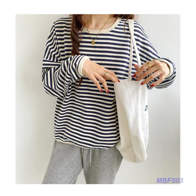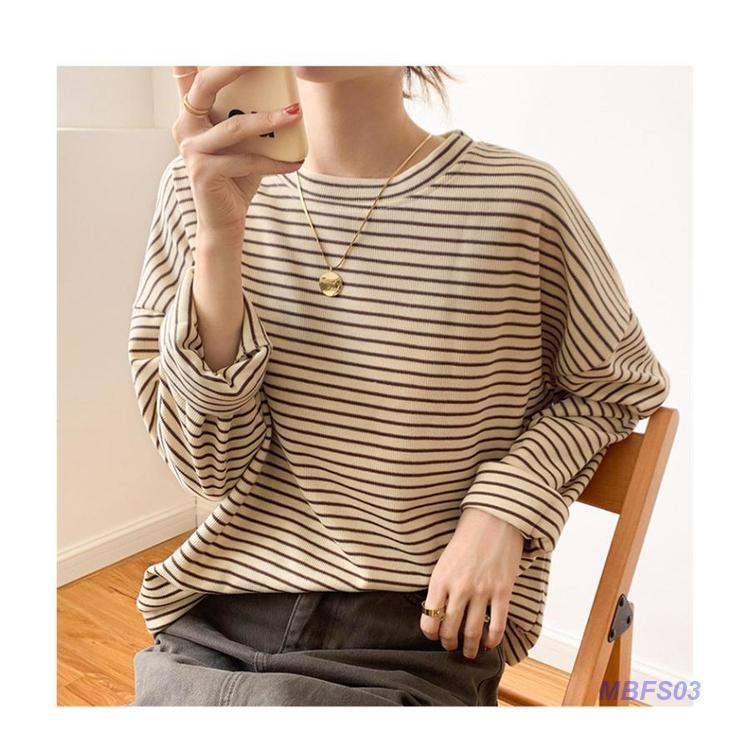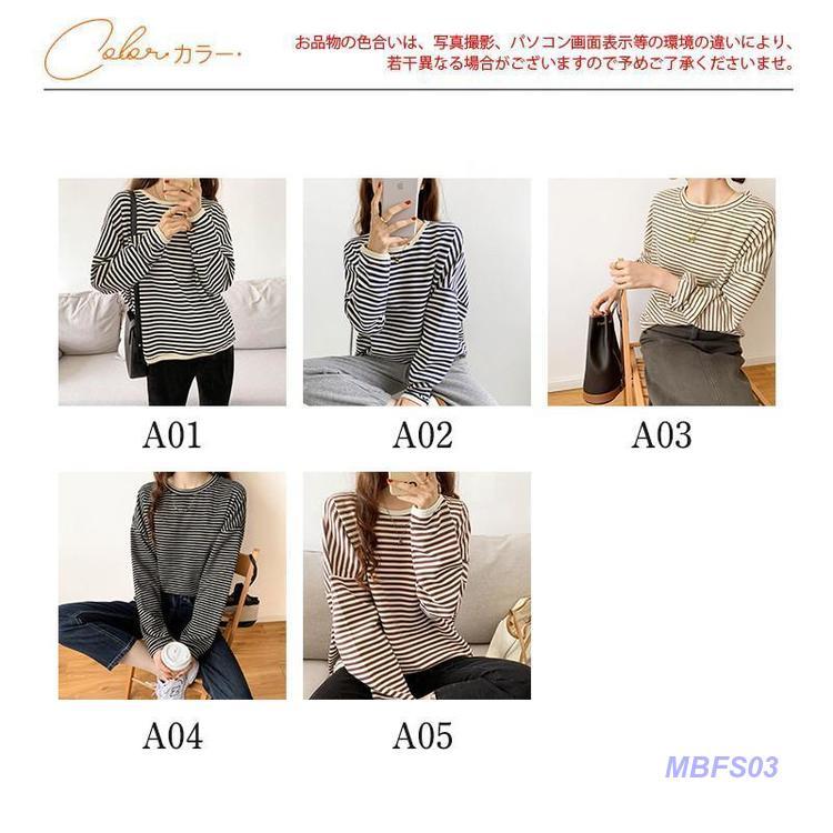 トレーナー レディース トップス スウェット 綿 ロンT クルーネック ストライプ アウター ゆったり 体型カバー 長袖 ボーダー 春秋 カジュアル