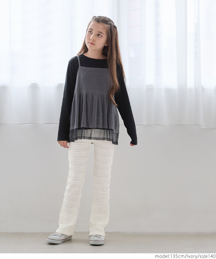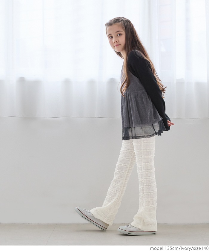 coca レースフリルセミフレアパンツ キッズ パンツ デニム レギンス