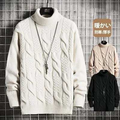 ニットセーターメンズ厚タートルネックハイネック 長袖ニットトップスゴルフウェアケーブル 編み無地秋冬防寒保温暖かいビジネス ニット