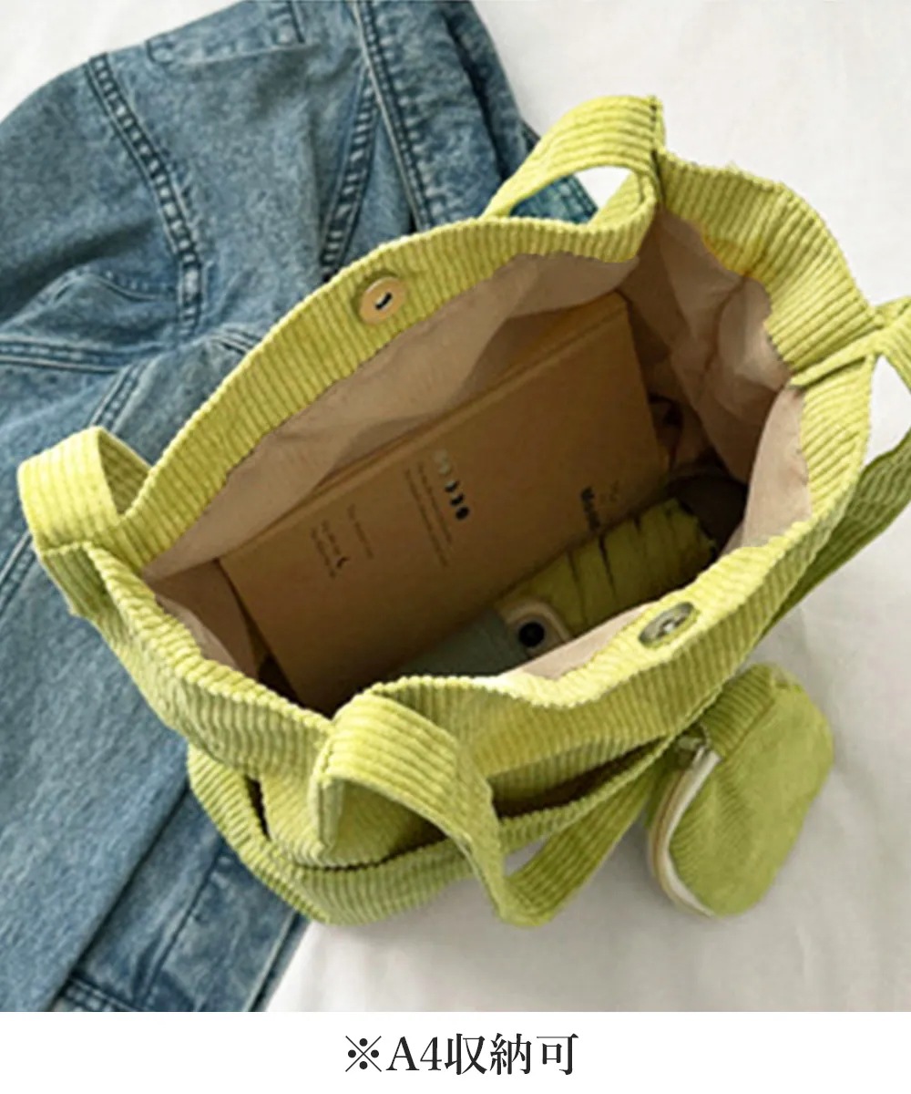 ポーチ付きコーデュロイトートバッグ大容量 84HBJP-005 トートバッグ