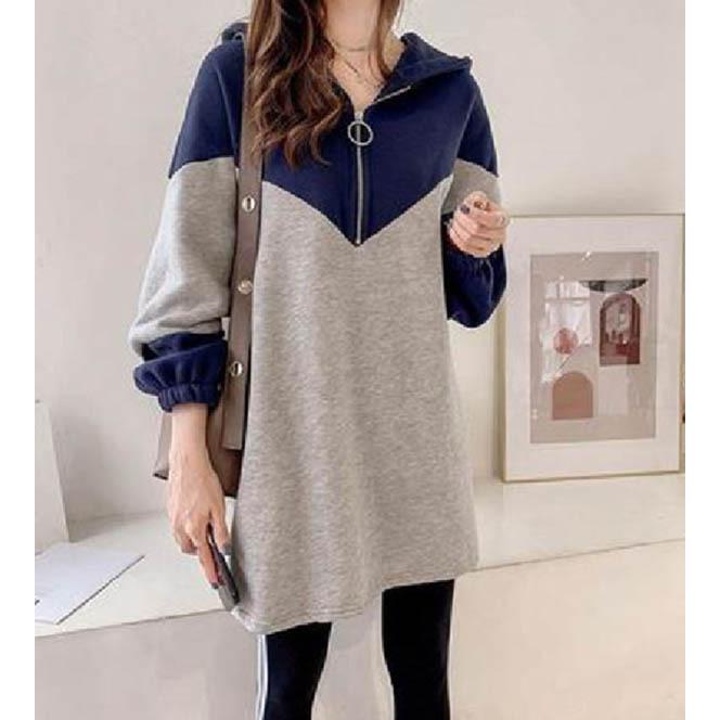 パーカー フード付き 切り替え オーバーサイズ プルオーバー ゆったり ファスナー付き ロング 配色 カジュアル レディース トップス パーカー