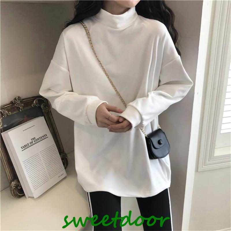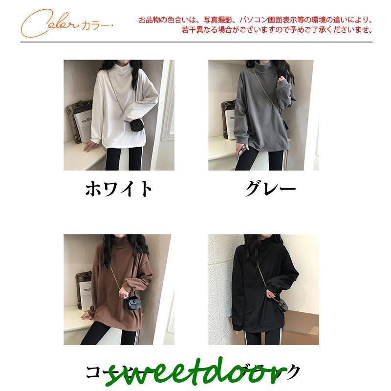Tシャツ レディース カットソー 長袖 ロングT インナー 裏起毛 プルオーバー レイヤード ハイネック ゆったり 着痩せ 厚手 通勤 きれいめ 春秋 新作