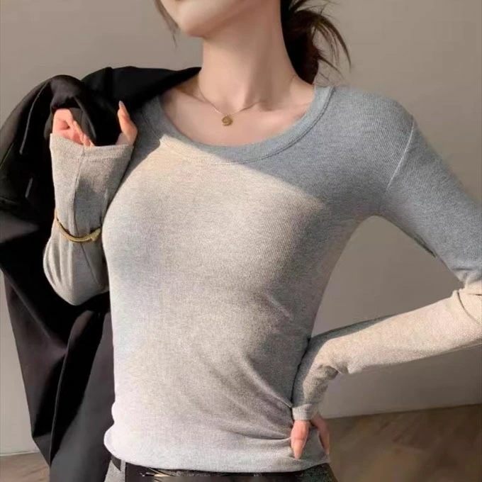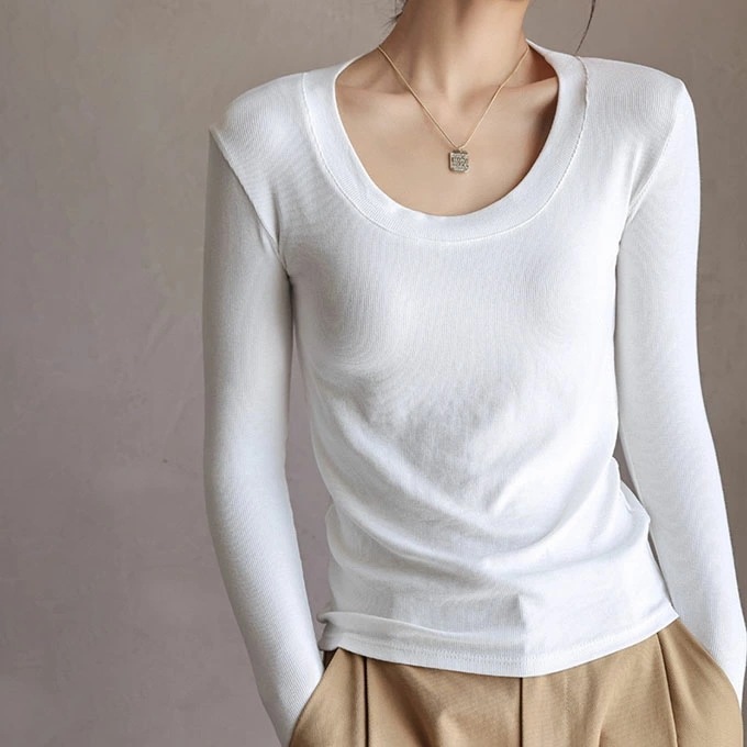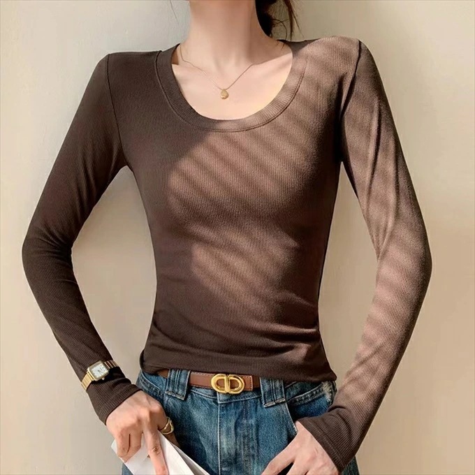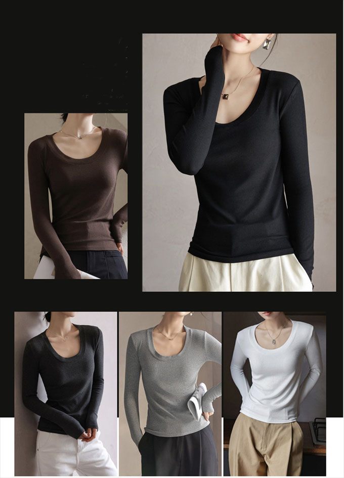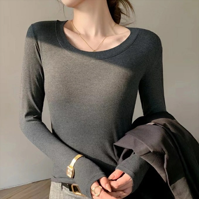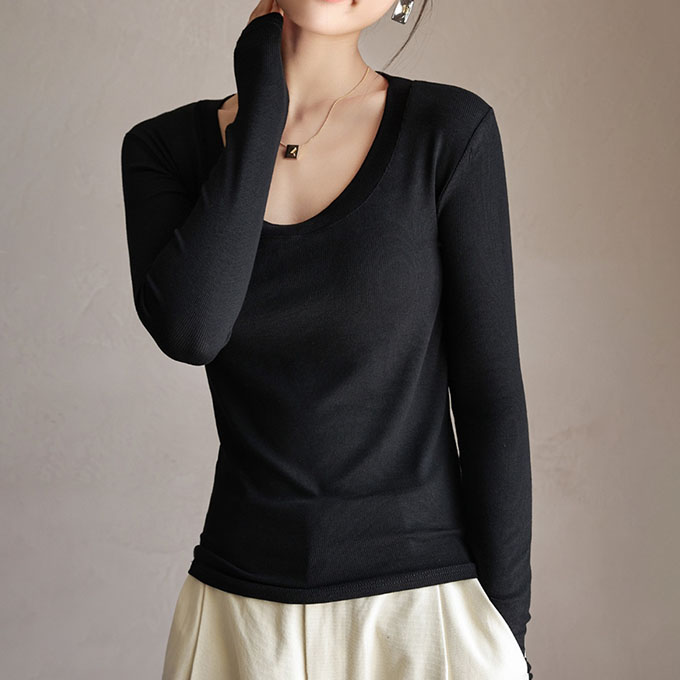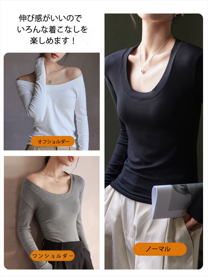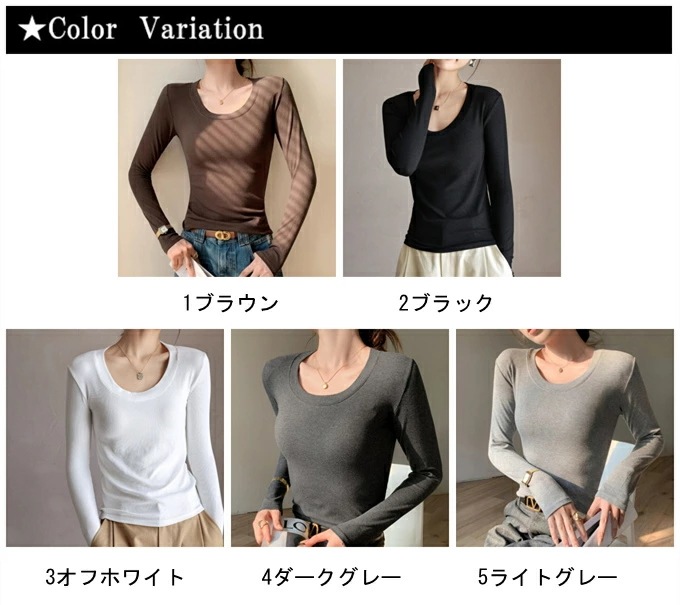 リブ ロンt インナー 長袖 tシャツ レディース レーヨン レイヤード 重ね着 落ち感 レーヨン素材としては厚手 黒 ブラック ブラウン グレー ホワイト 伸び感抜群 ストレッチ のびのび 長袖イ