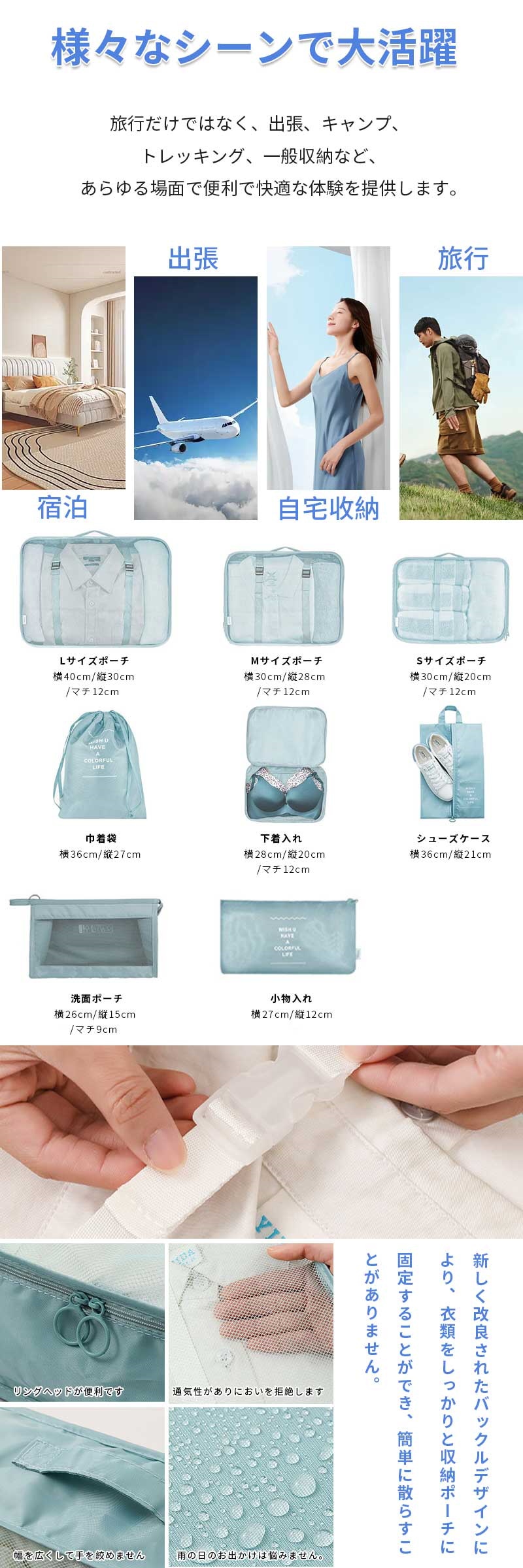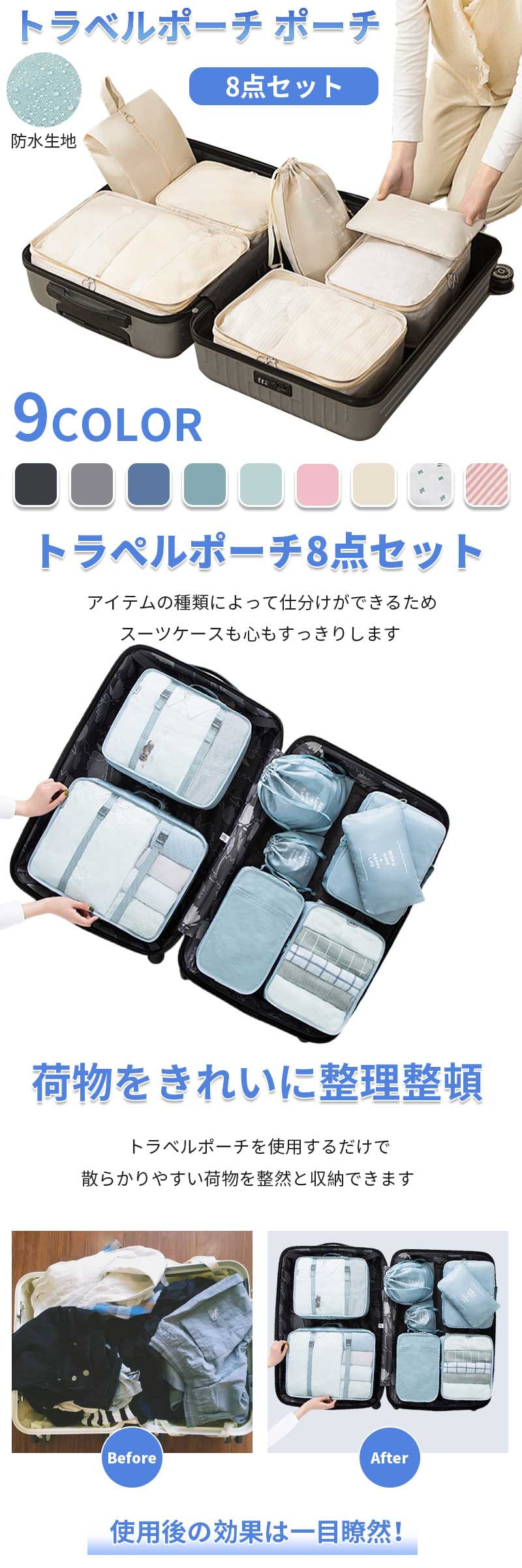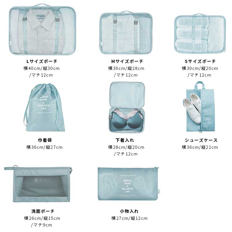トラベルポーチ ポーチ セット おしゃれ 9カラー 8点セット 衣類収納ポーチ 軽量 折りたたみ スーツケース キャリーケース旅行バッグ パッキング トラベルバ