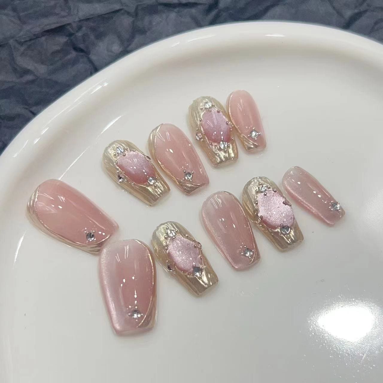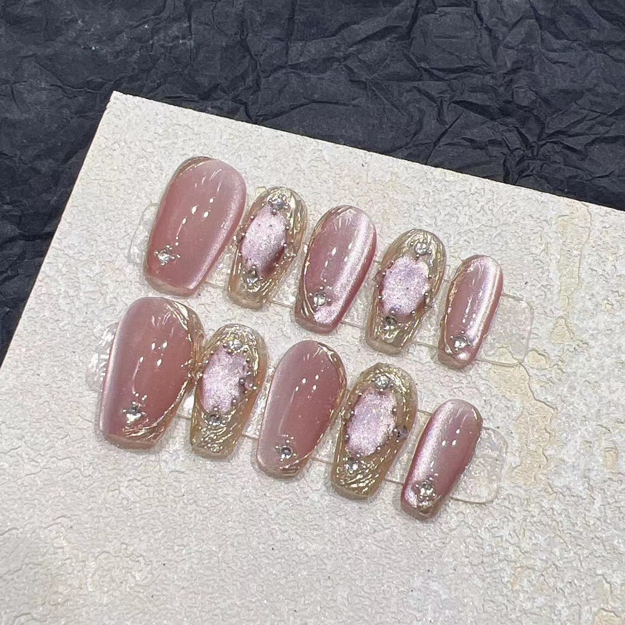 snsで話題沸騰ファッション 2025新作ピンクキャッツアイ ネイルチッネイル完成品フェイクネイルチップ 取り外し可能 ネイルチップ