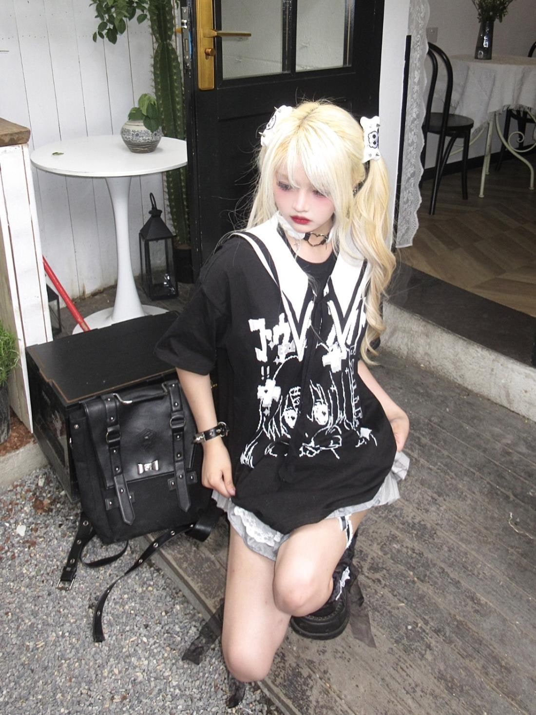 パーカー2025新入荷 スーツ集合 韓国ファッション 二次元アニメ ミレニアル パンク y2k 春夏 サブカル 長袖 ゆったりプリント Tシャツファッションクール