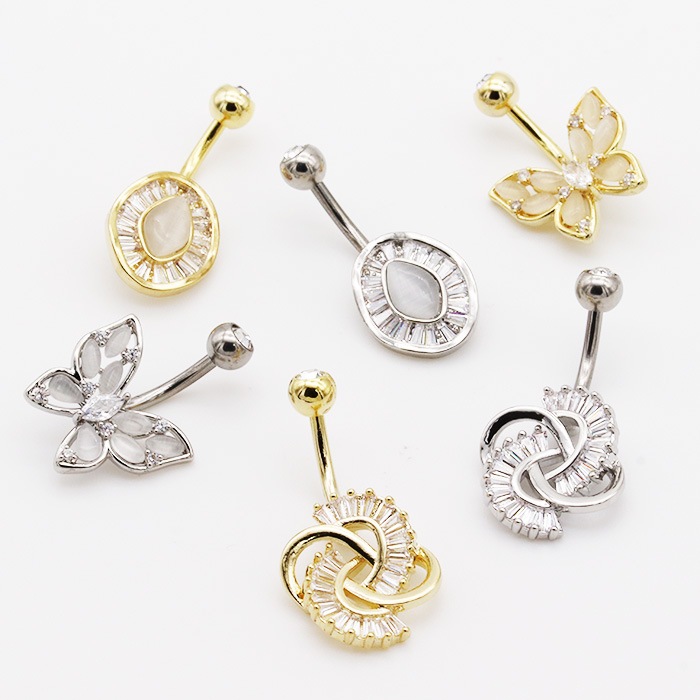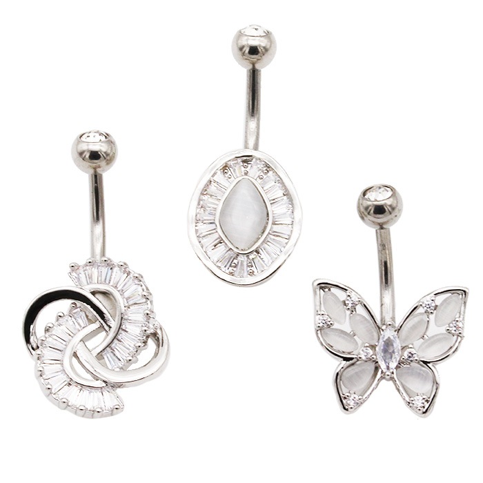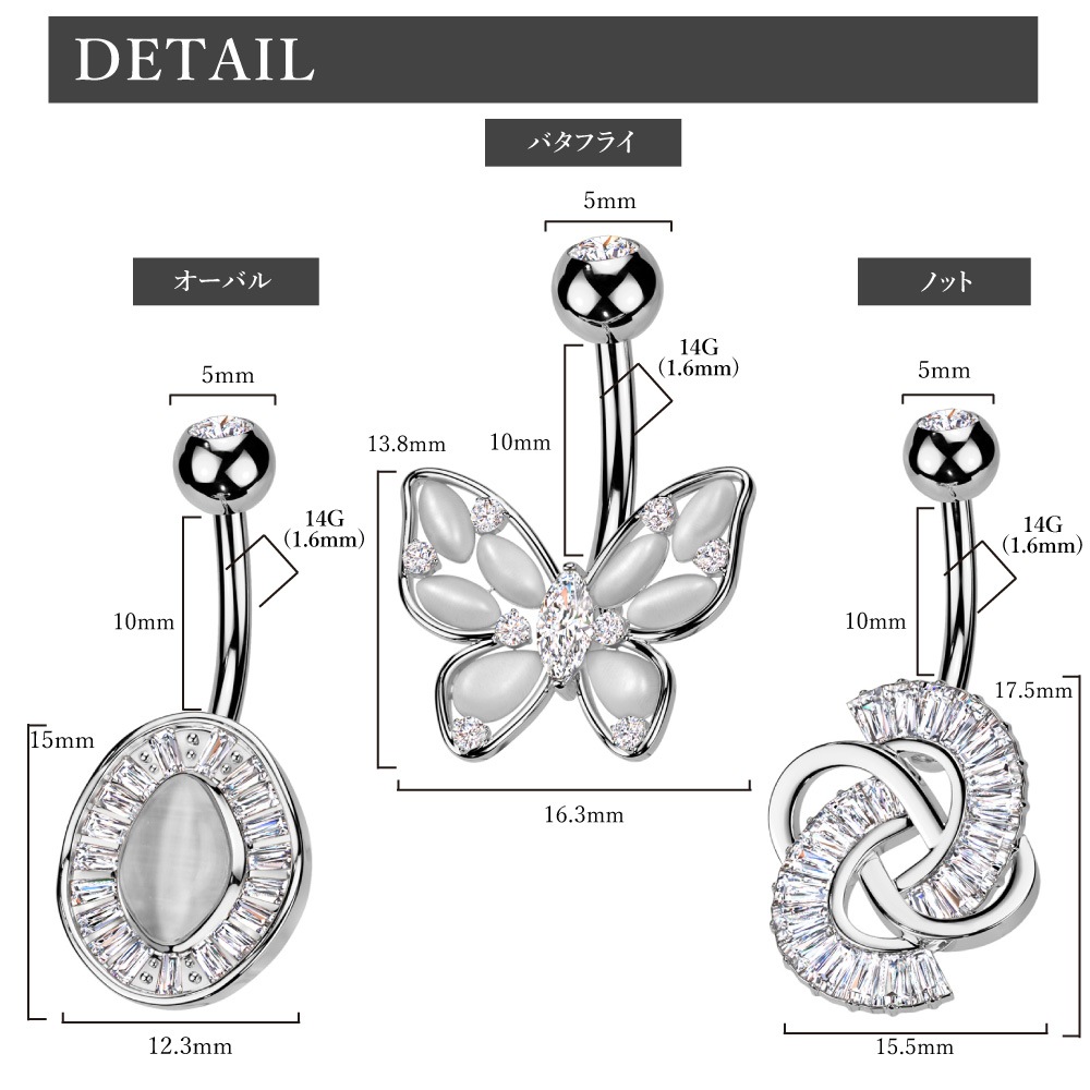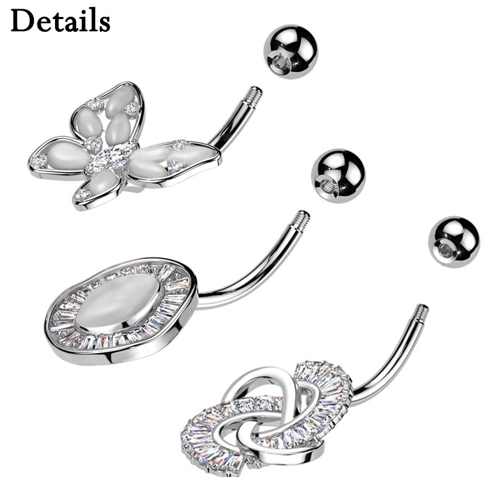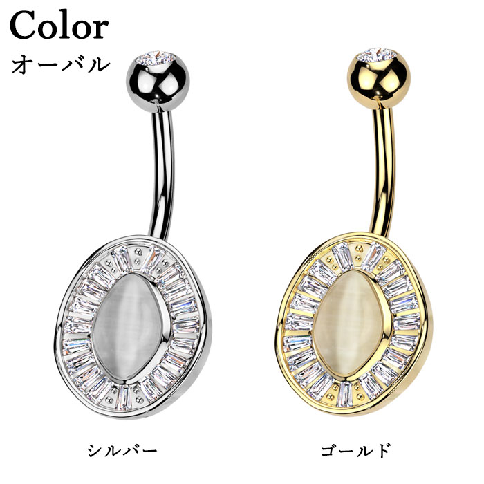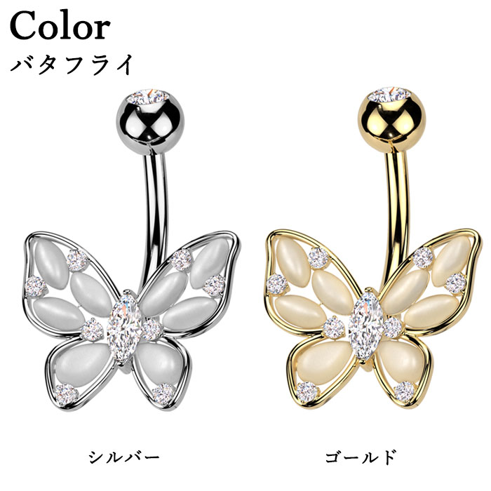 ヘソピアス 14G バナナバーベル ジュエル キャッツアイ ストーン バタフライ オーバル 変形 ジュエリー ボディピアス へそピ 316L サージカル ステンレス