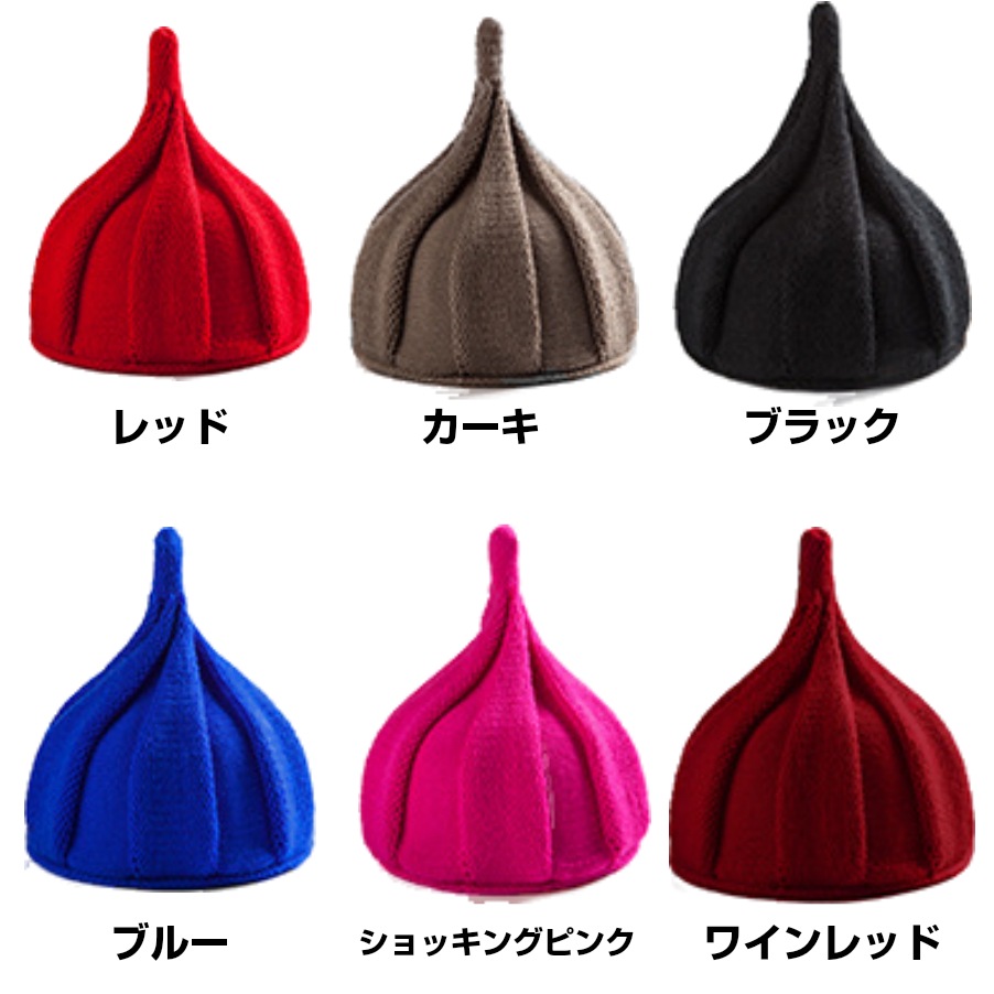 とんがりニット帽 キッズ 柔らかニット帽子 キャップ どんぐり レッド カーキ ブラック ブルー ピンク グレー ブラウン ベージュ イエロー