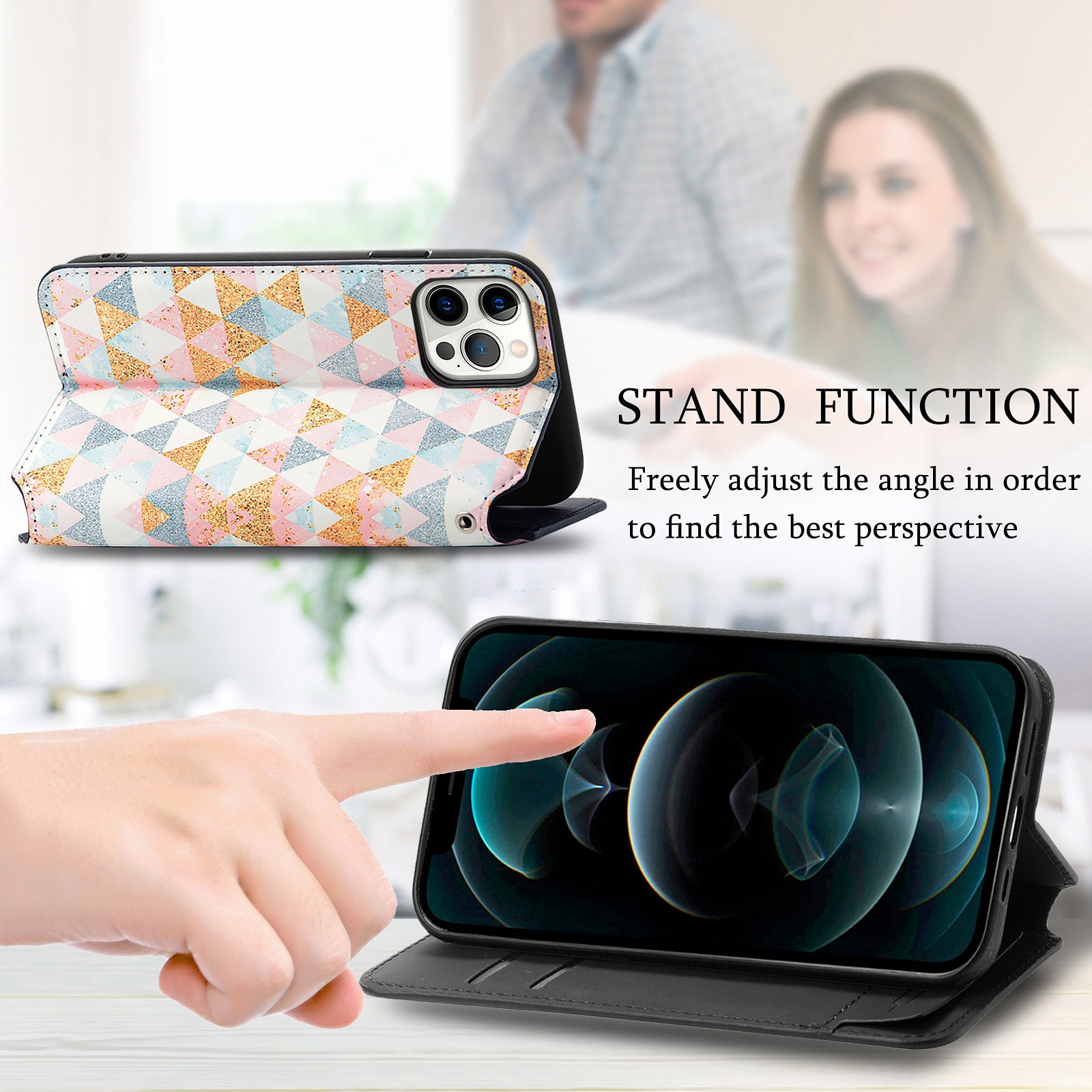 iPhone16 Pro手帳型保護ケース12 mini全面保護PUスタンドカード磁気吸着 iPhone15 13 Mini アップル保護スタンドケース
