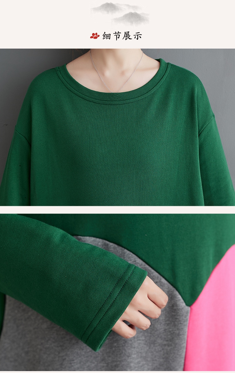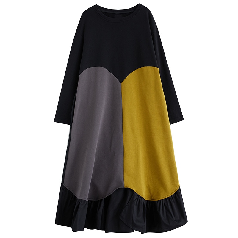 2色春秋の新金韓国版流行ファッション個性カジュアルアウトドア通勤復古文芸気質ゆったりサイズエレガント甘いアークジョイント減齢ジョイントロング丸首長袖ワンピースJGX56