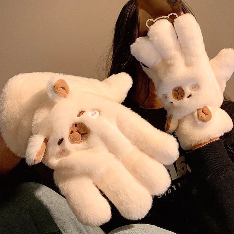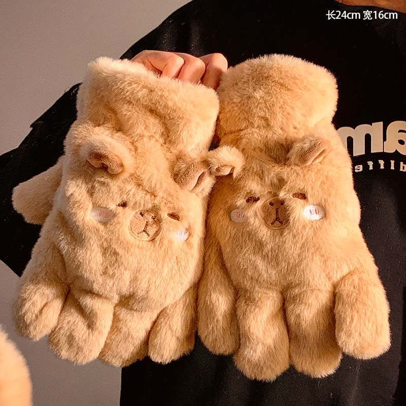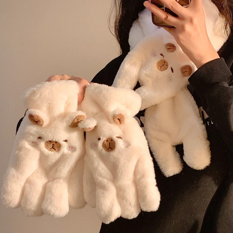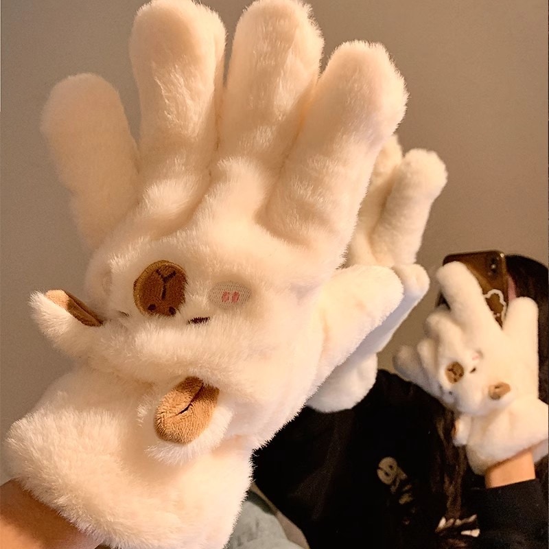 手袋 ぬいぐるみ手袋女性冬暖かい学生サイクリング防寒 ニット手袋