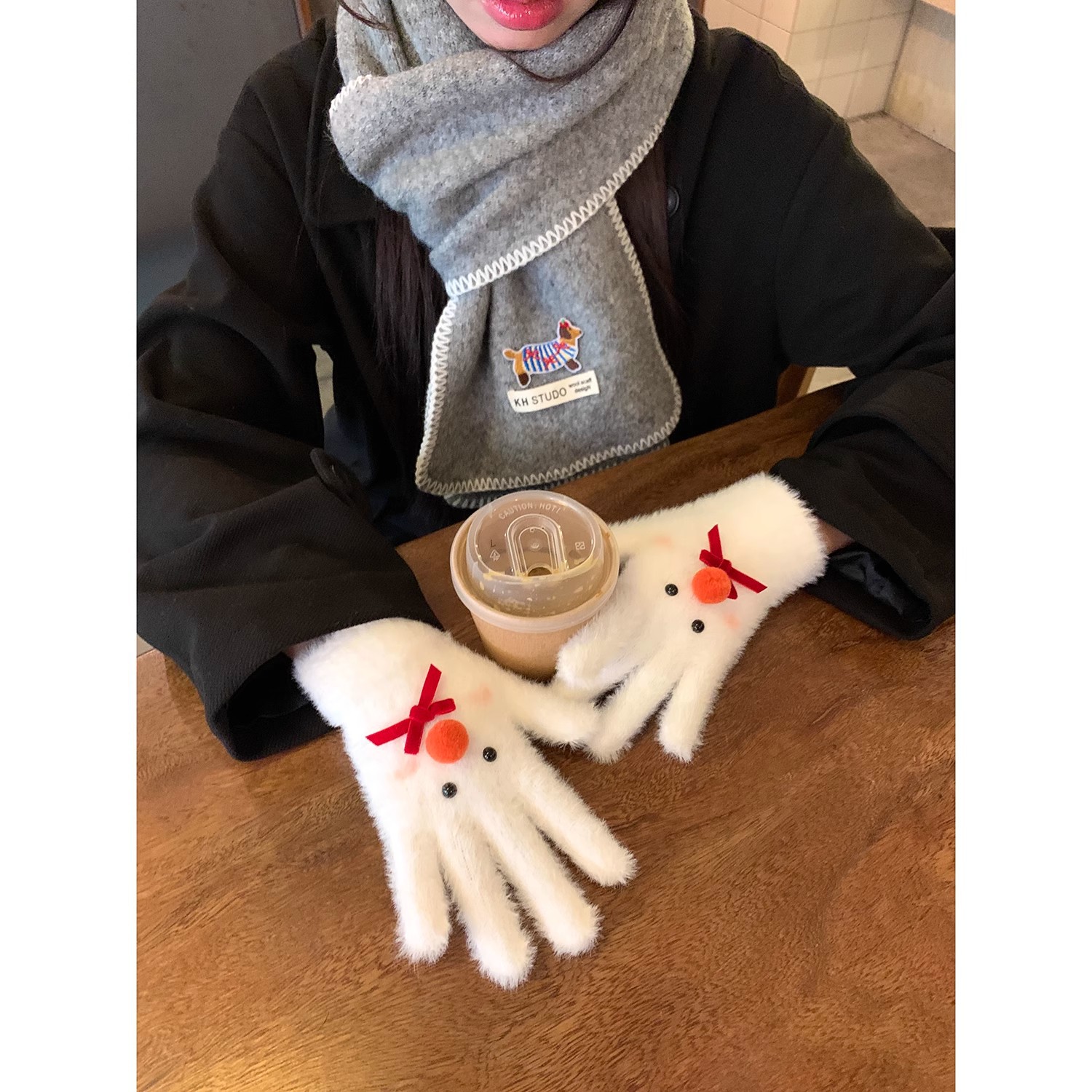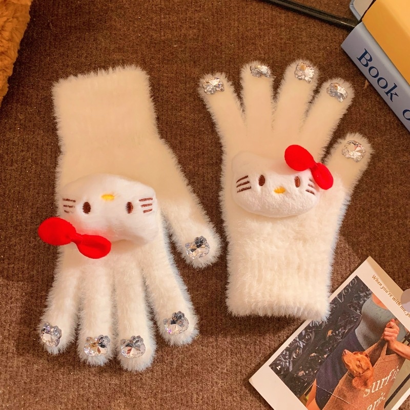 手袋 ぬいぐるみ手袋女性暖かい弓スプリットフィンガー手袋 ニット手袋