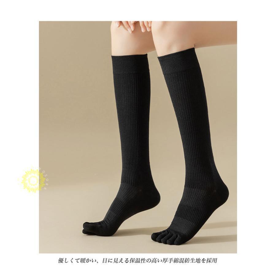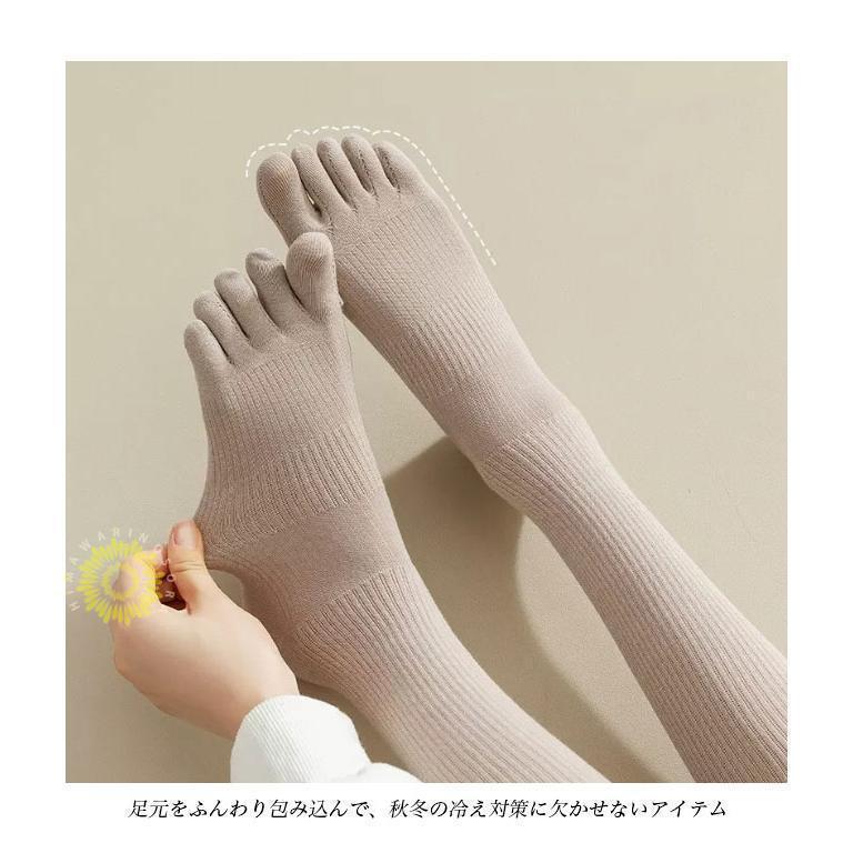 五本指 ハイソックス レディース 靴下 防臭 五本指ハイソックス リブソックス 厚手 5本指ソックス ハイ 速乾 吸汗 綿混 無地 五本指靴下