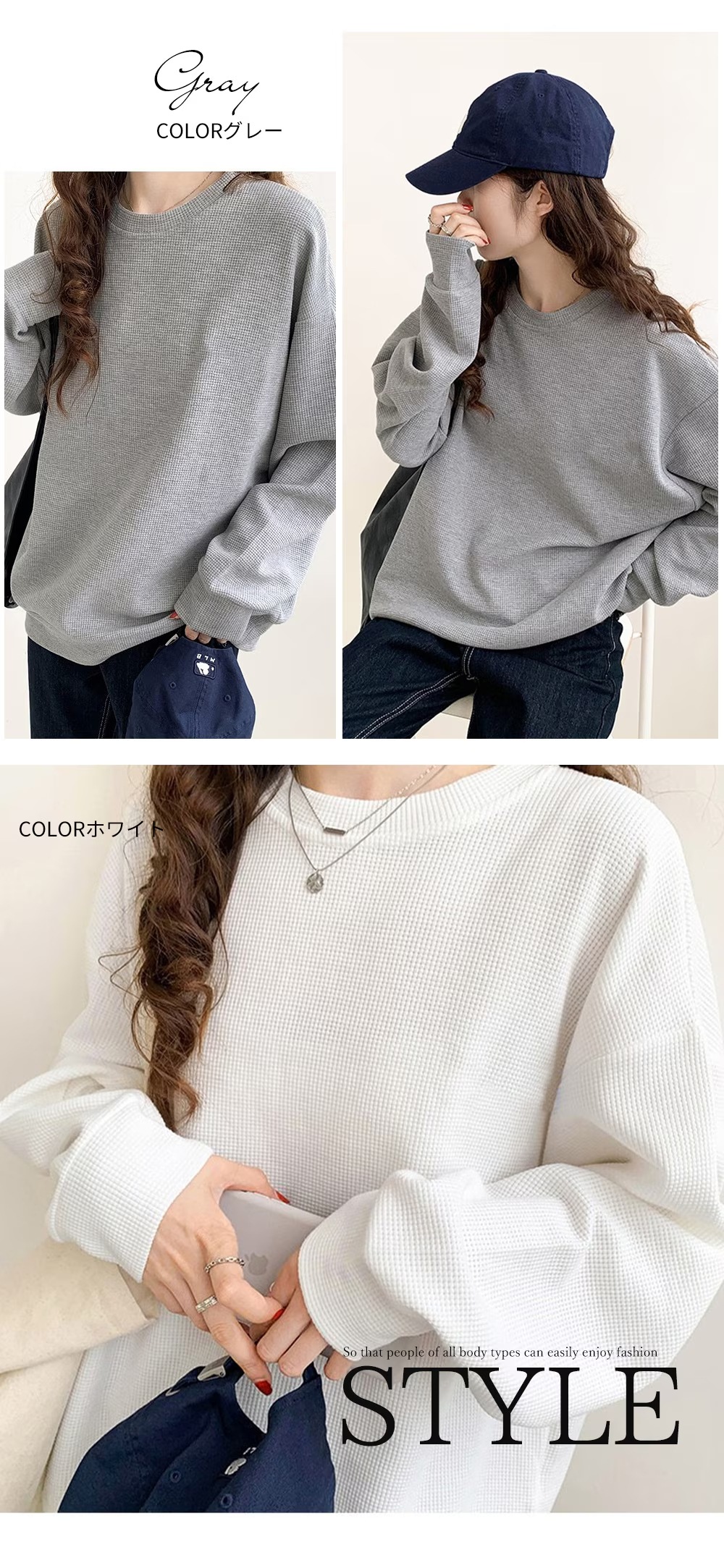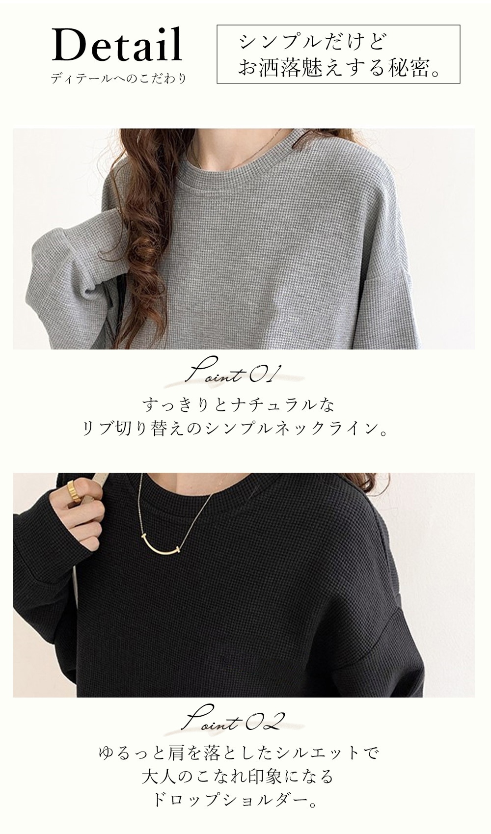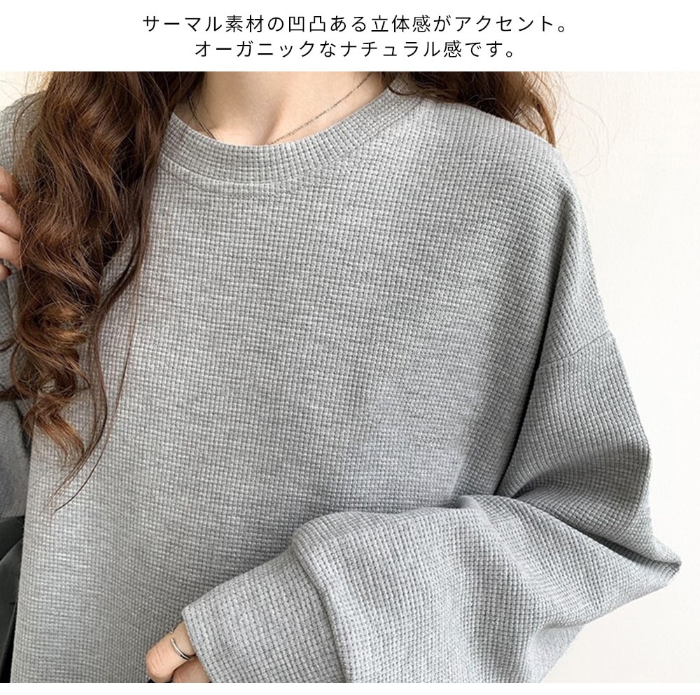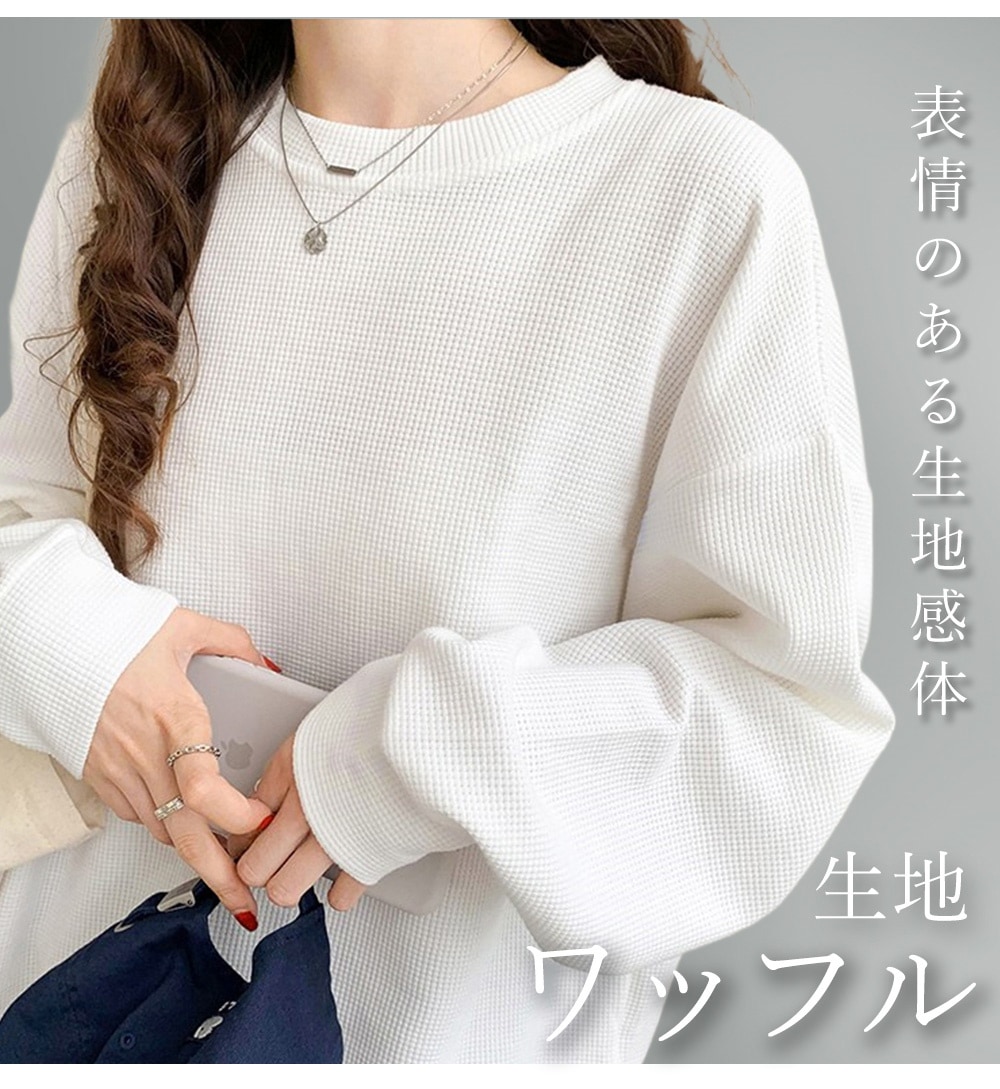 ワッフル生地トップス長袖 メロウラウンドネック 長袖 メロウ フリル ボーダー ニット トップス カットソー ツートーン メロー おしゃれ 無地 かわいい シン