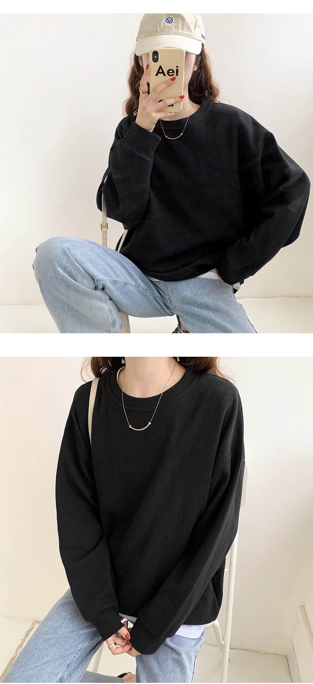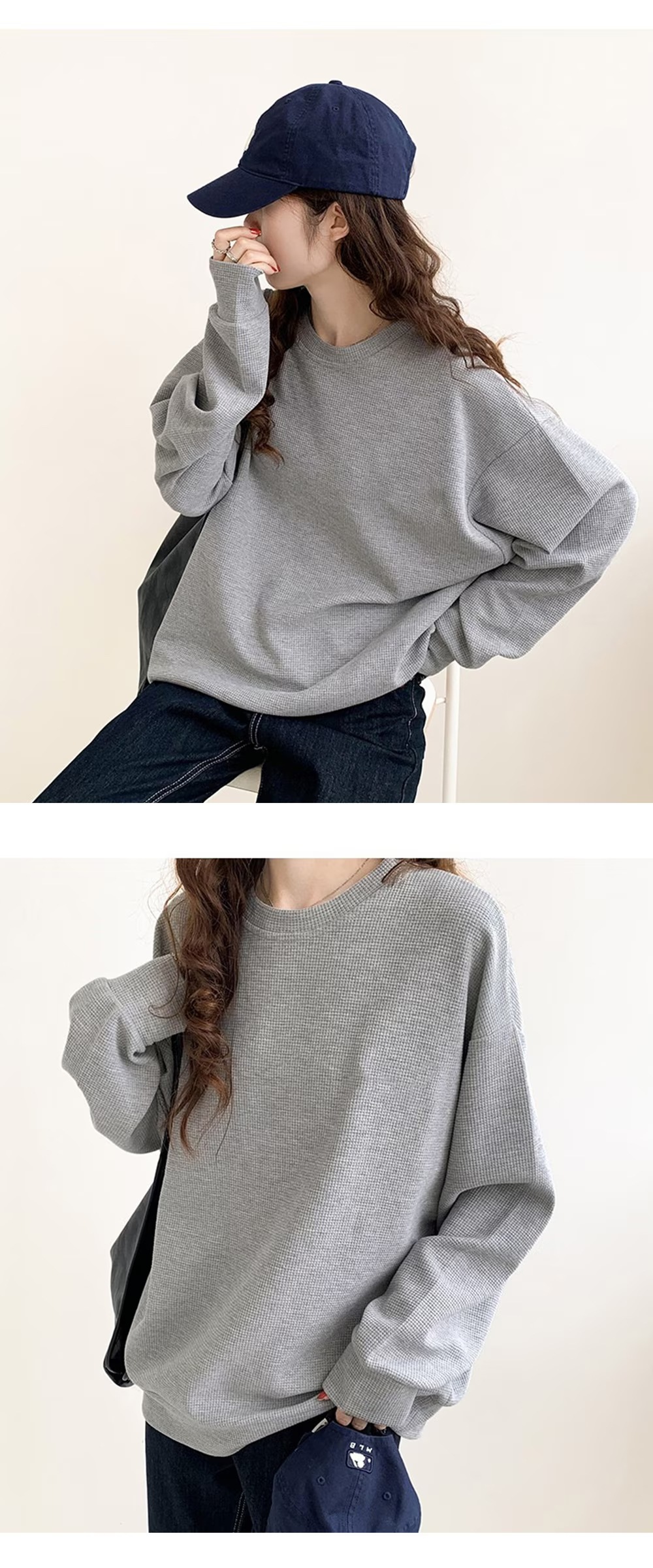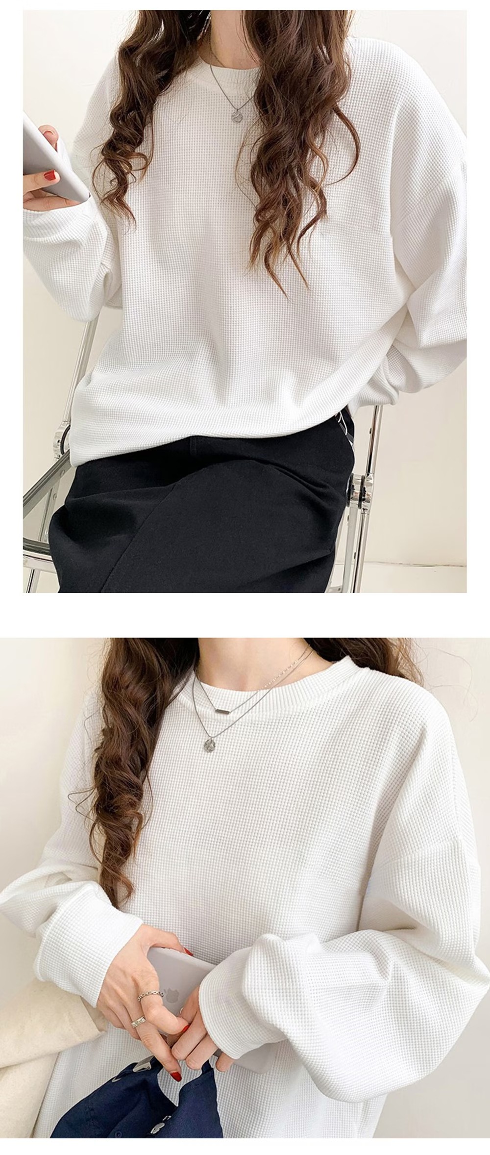 ワッフル生地トップス長袖 メロウラウンドネック 長袖 メロウ フリル ボーダー ニット トップス カットソー ツートーン メロー おしゃれ 無地 かわいい シン
