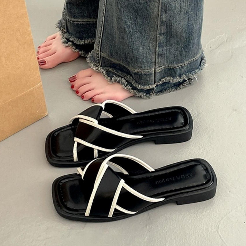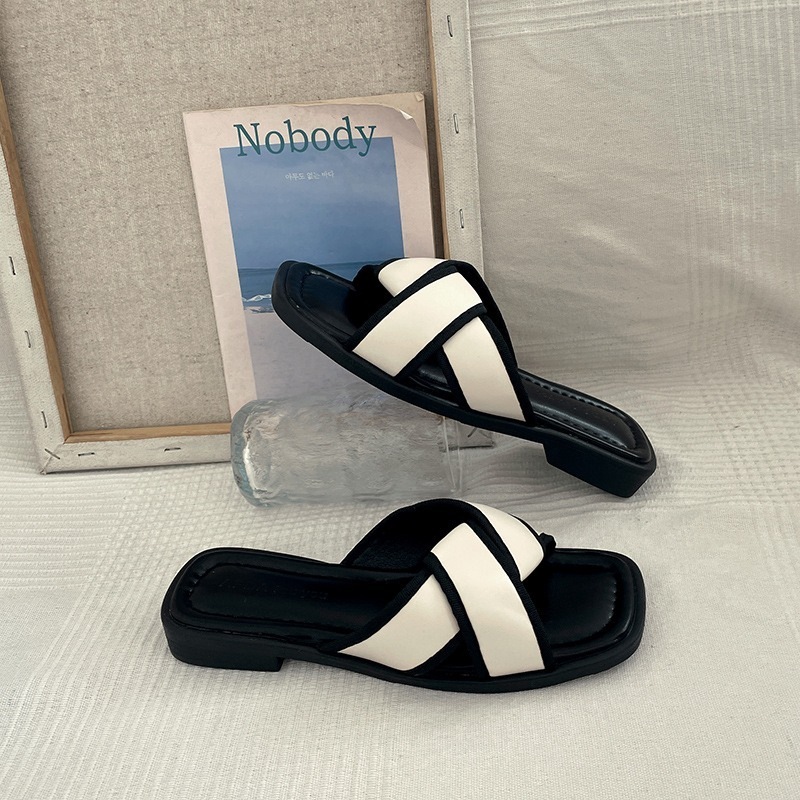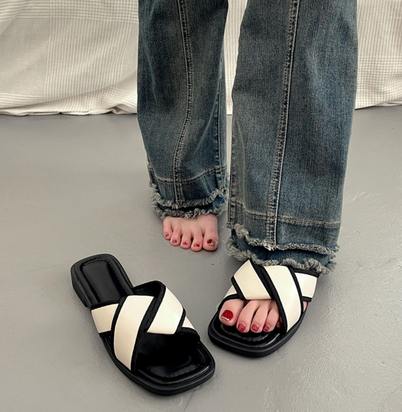 サンダル ぺたんこサンダル ローヒール ブラック ホワイト 韓国 レディース オルチャン フラット 黒 白 フラットソール 歩きやすい ボーイッシュ 2cmヒール 22.5cm