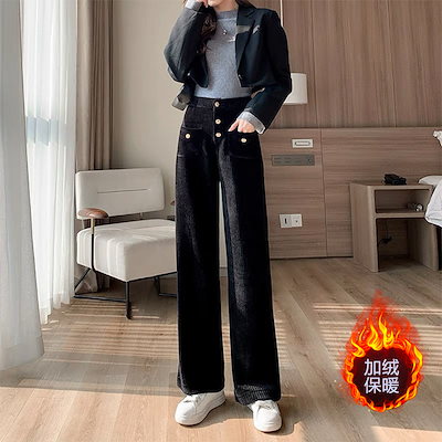 デニムボトムス デニムパンツ 脚長効果 スキニーパンツデニムパンツワイドパンツ加絨加厚ワイドパンツ女性秋ハイウエスト着やせストレートパンツコーデュロイゆったりカジュアルパンツ