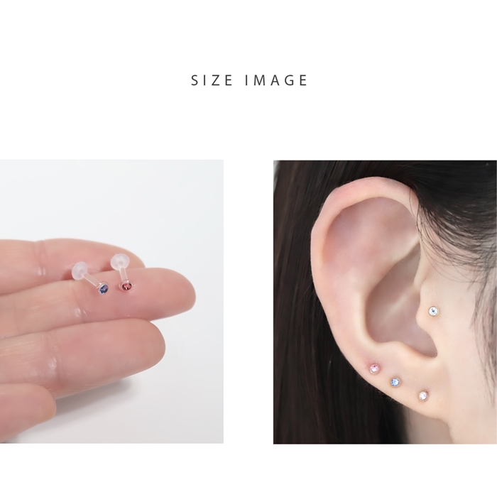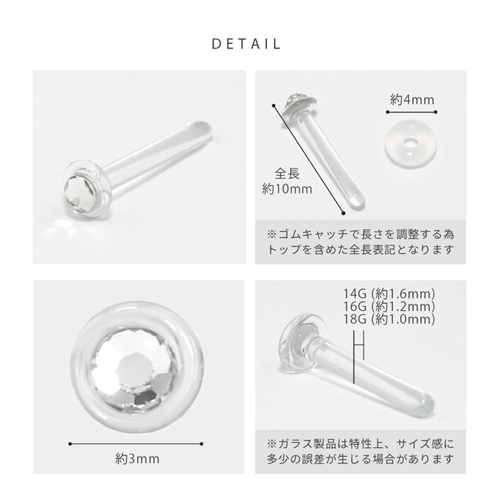 RIN 軟骨ピアス 14G 透明ピアス 16G ボディピアス 18G ガラスピアス さりげない 小ぶり ストーン ストレートバーベル ゲージ ピアス サージカルステンレス 片耳用