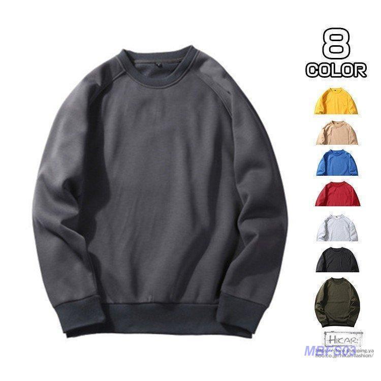 スウェット トレーナー メンズ 無地 長袖 トップス クルーネック インナー カジュアル 秋物 シンプル 新作 Tシャツ