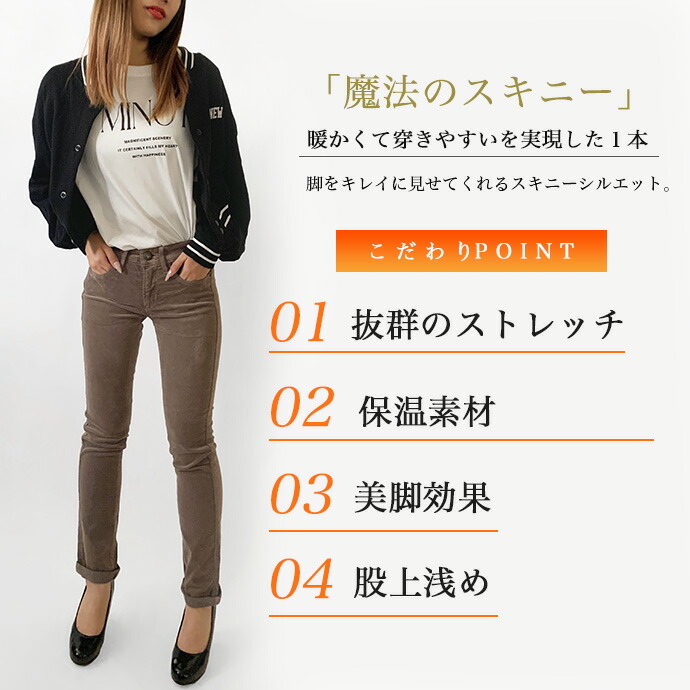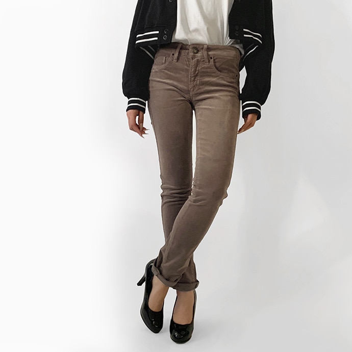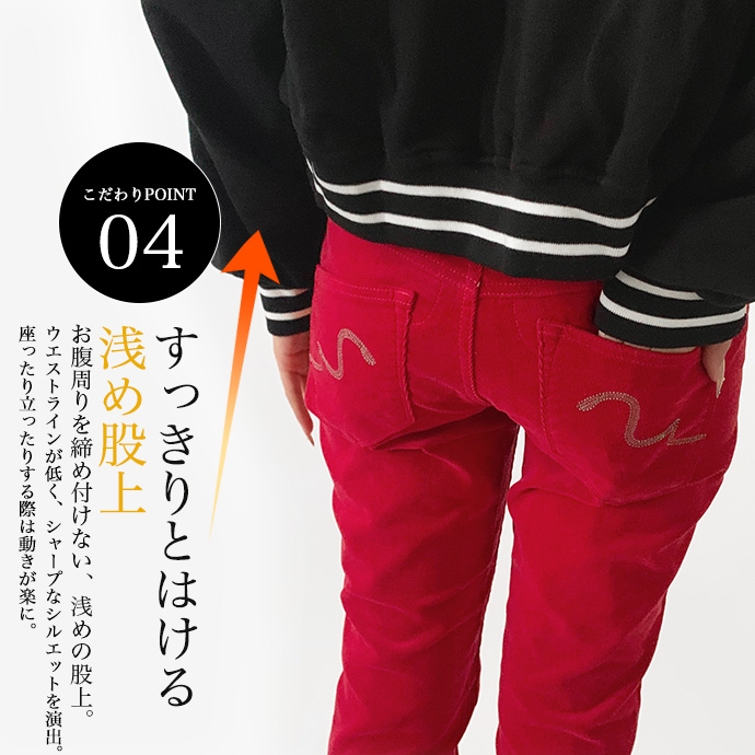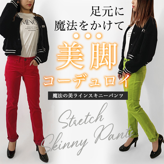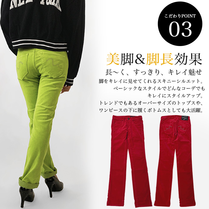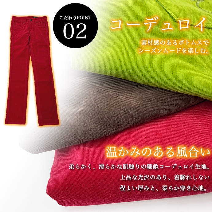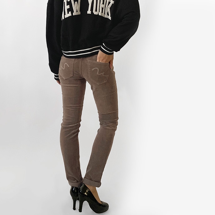細畝のストレッチコーデュロイを使用したスキニーストレート。