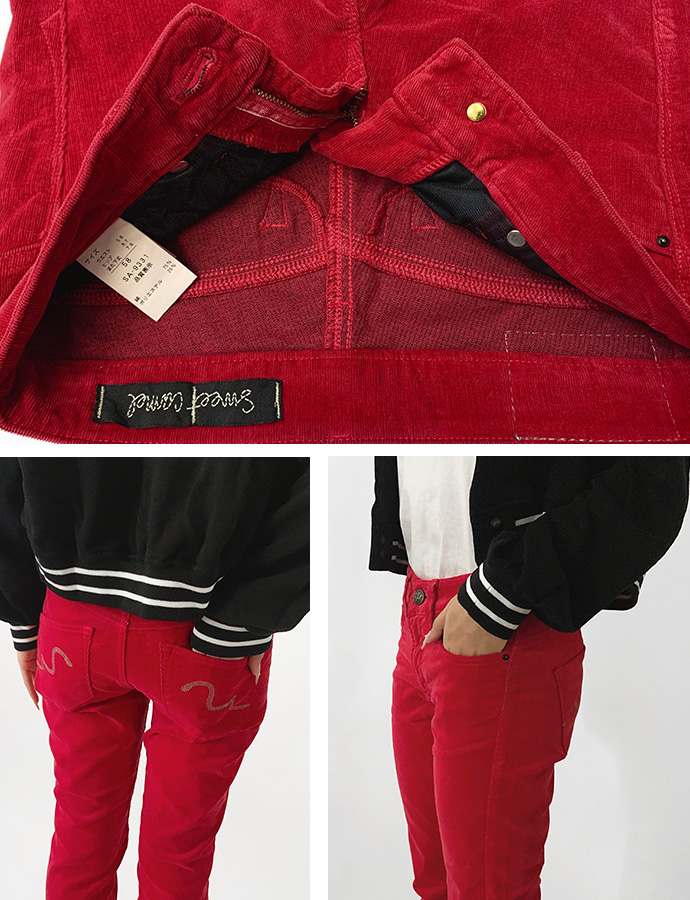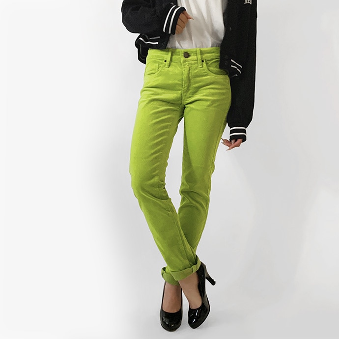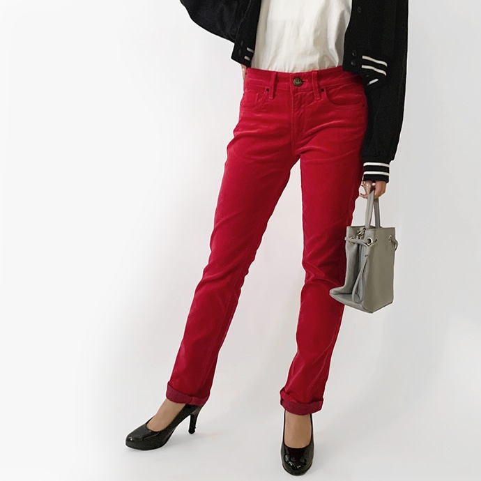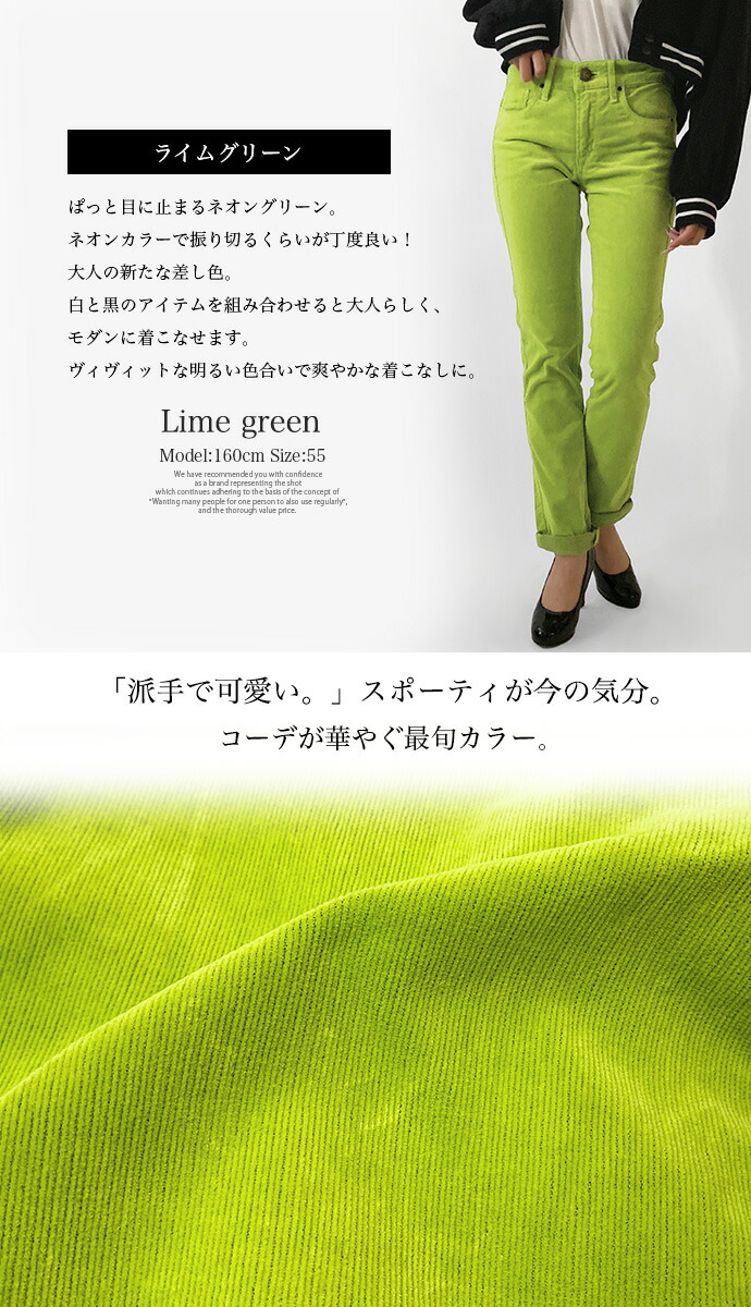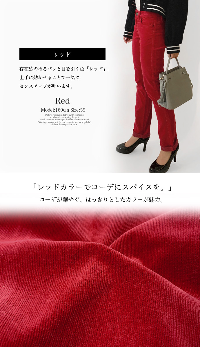 細畝のストレッチコーデュロイを使用したスキニーストレート。