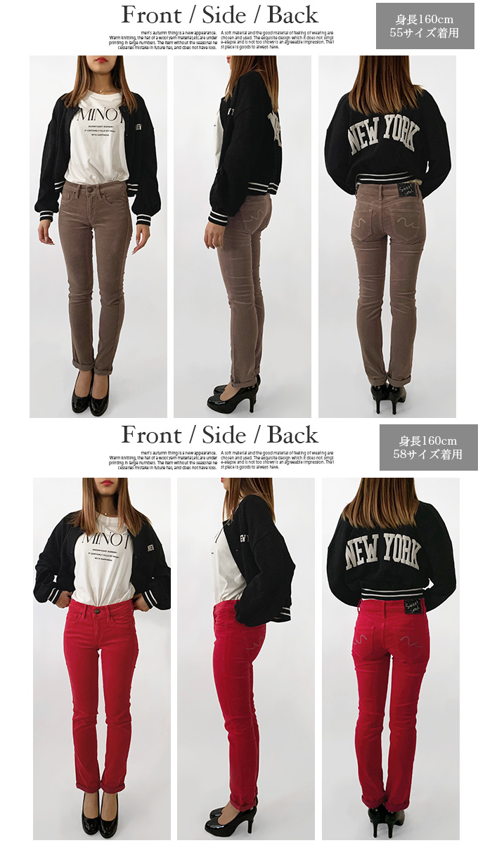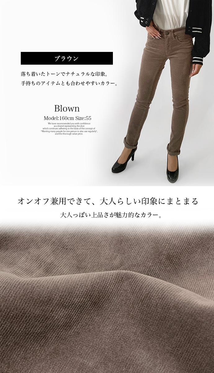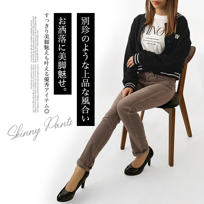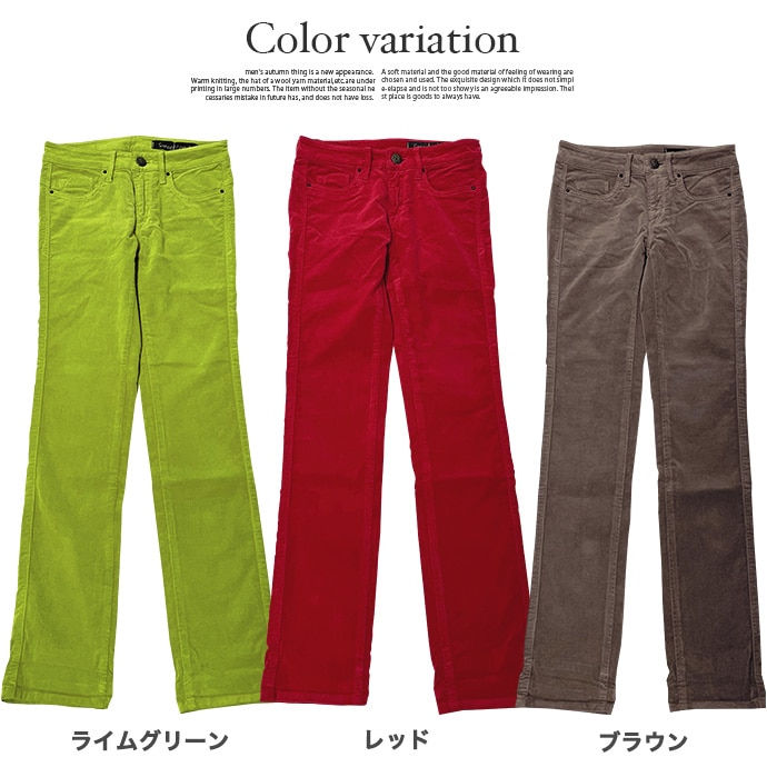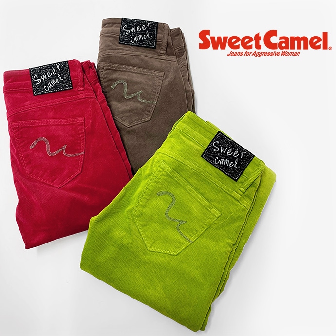 スキニー カラーパンツ アンクルパンツ ボトムス ストレッチ 細身 股上浅め 小さいサイズ 美脚 脚長 コーデュロイ 保温 Sweet Camel スイートキャメル レディース