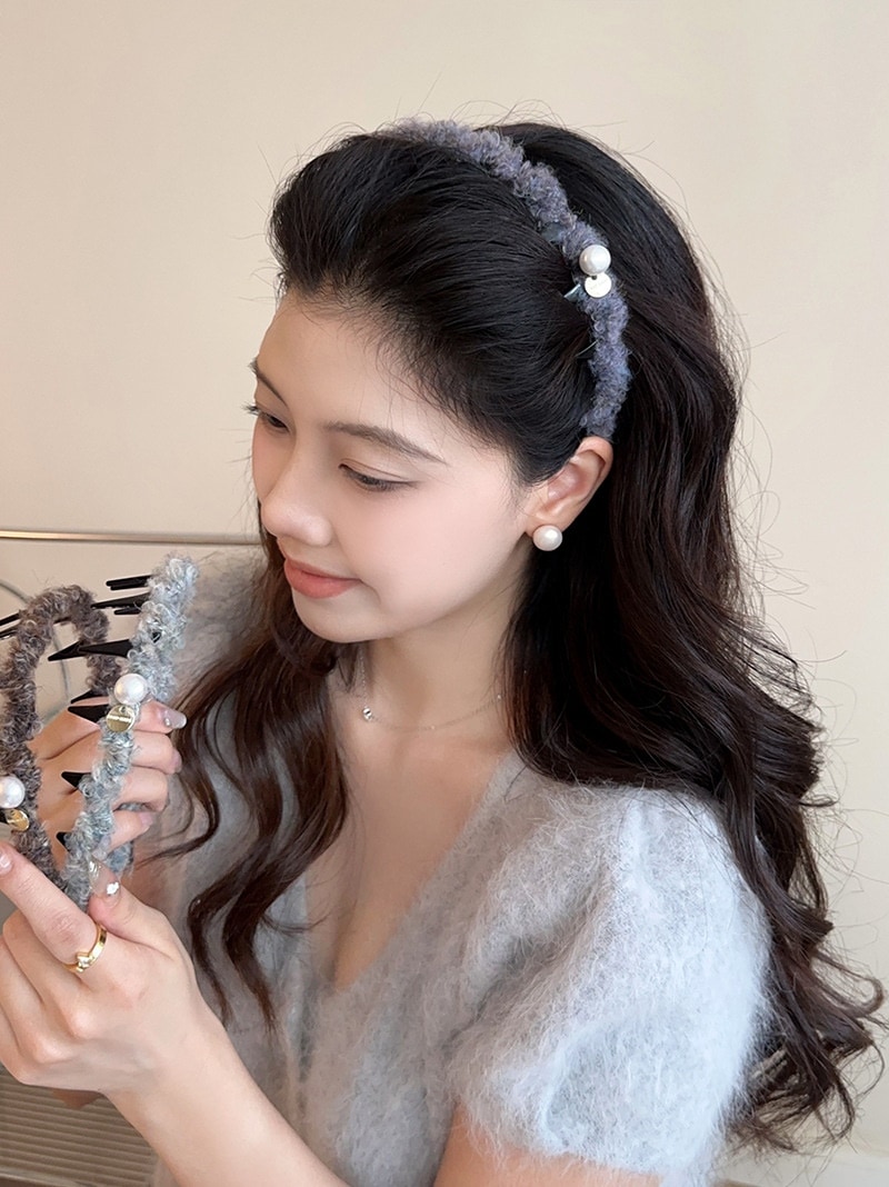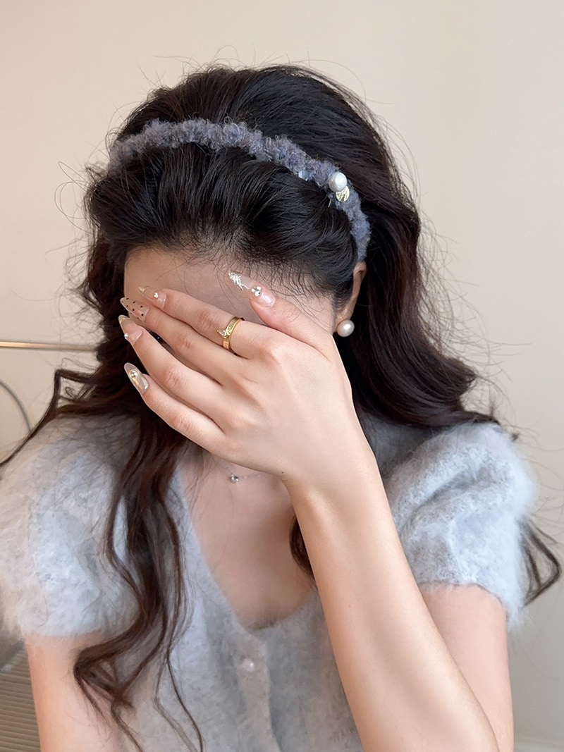 Type: グレーブルー毛糸カチューシャ ダークブラウン毛糸カチューシャ グレーグリーン毛糸カチューシャ