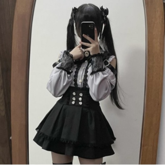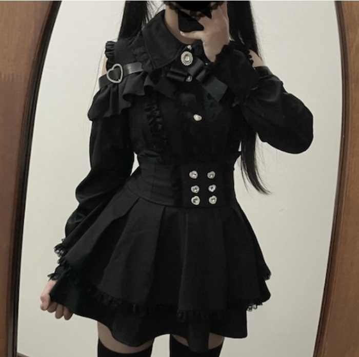 全4カラーオフショルレースブラウス&ミニスカートセット ワンピース