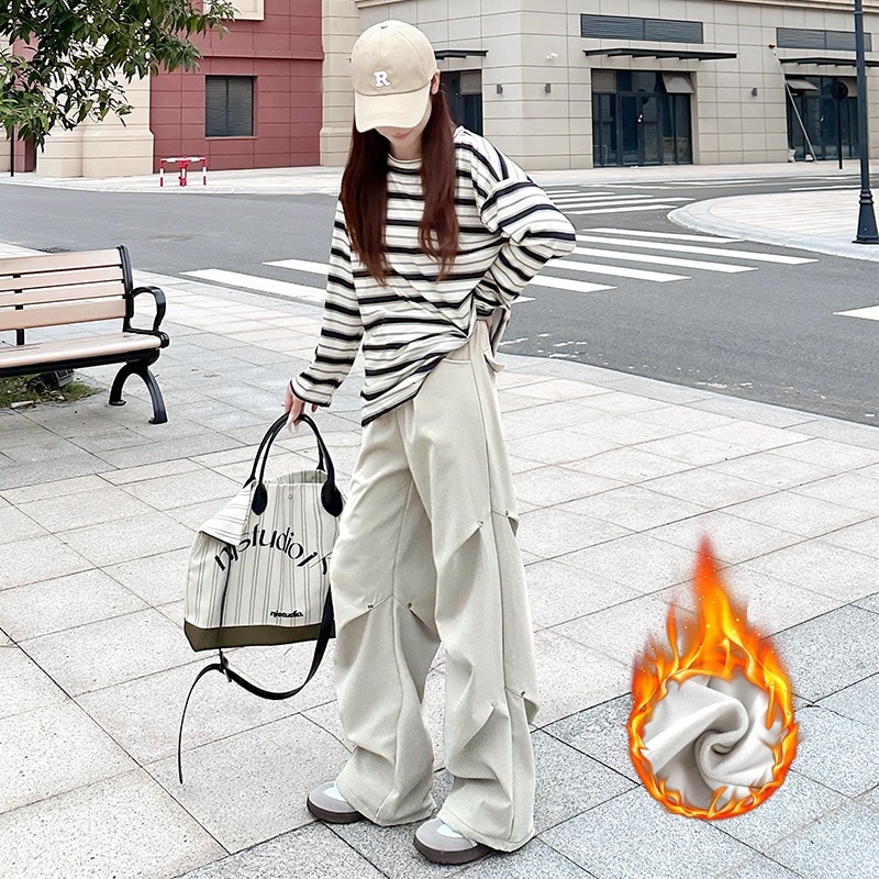 春 ロングパンツ レディース ノーマルタイプ 裏起毛 パンツ カーゴパンツ ワイドパンツ 体型カバー 着痩せ ゆったり 韓国ファッション ロングパンツ