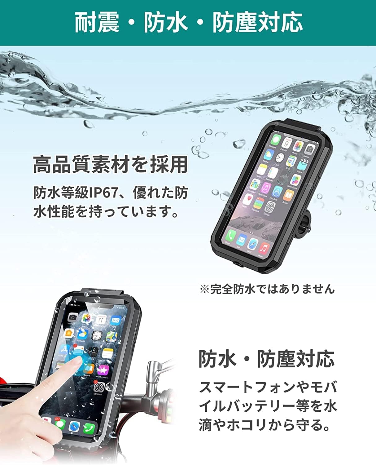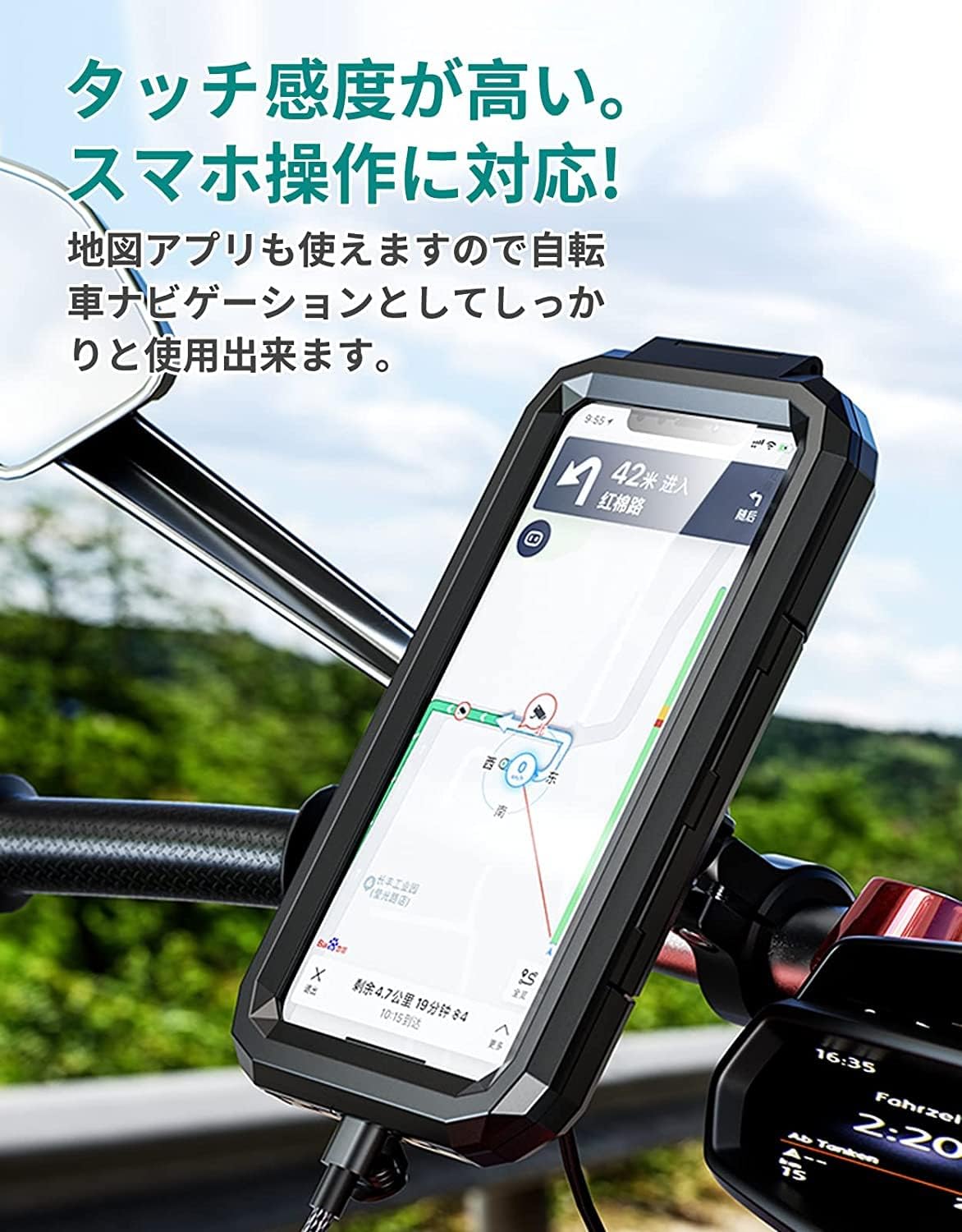 自転車 スマホ ホルダー 防水 バイク スマートフォンバイク用 携帯ホルダー 自転車用 バイク用 スマホホルダー 超高感度スクリーン GPSナビ 360度回転 高安定性 強力固定 脱落防止 簡単取付
