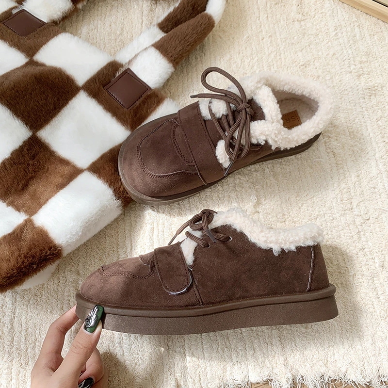 韓国ファッション レディース モカシン 暖かい百掛けカジュアル靴 ブラッシュド レザー コットン シューズ モカシン
