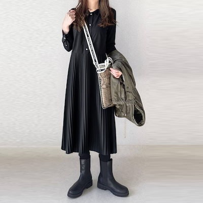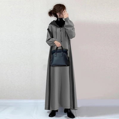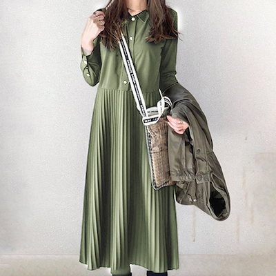 冬新作 シンプル 着痩せ ワンピース ロングワンピース 長袖ワンピース 体型カバー 20代 30代 40代 50代