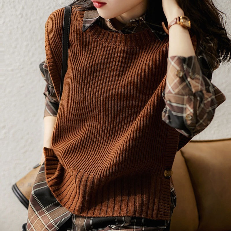 2025春 新作 おしゃれ 丸ネック 日韓 カジュアル ゆったり ベスト ノースリーブ ニットベスト タンクトップ 百掛け AWAWアウター 人気なリプニット