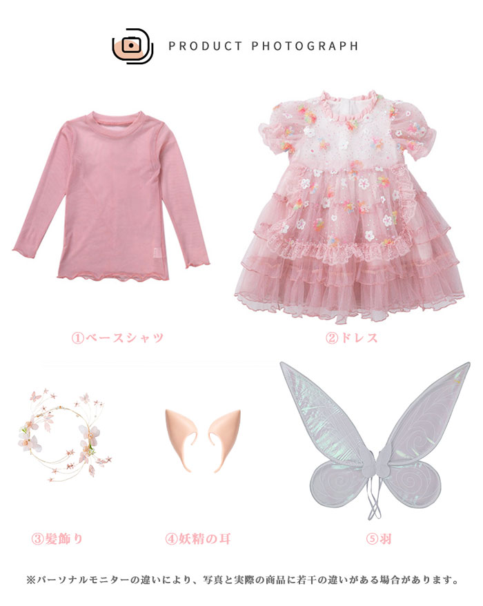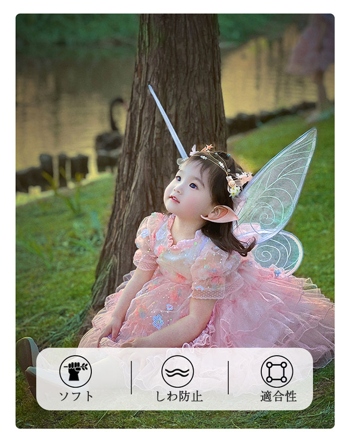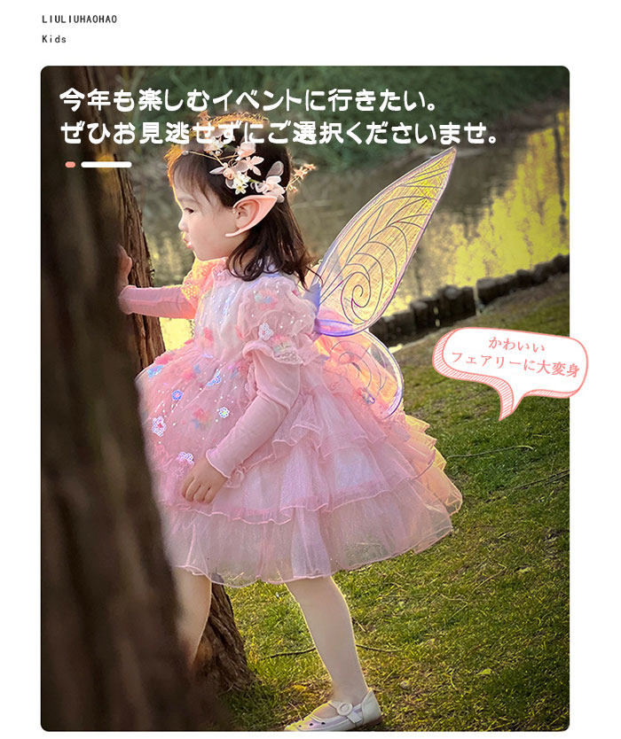 ハロウィン衣装 仮装 子供 妖精 女の子 コスチューム 5点セット 天使 蝶 精霊 妖精 妖精の耳 髪飾り 発表会 舞台 ダンス 衣装 妖精 天使の羽 コスプレ 羽根 プレゼント なりきり お遊戯会